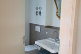 Wer mit dem Auto anreist, kann sein Fahrzeug für die gesamte Zeit des Aufenthalts direkt vor dem Garten in einer Parkbucht am Gartenzaun parken. Für Fahrräder, Skier oder andere Sportgeräte ist im Carport eine offen zugängliche Unterstellmöglichkeit gegeben (nicht absperrbar). Man betritt die Ferienwohnung im Erdgeschoss über einen gemeinsam genutzten Hauseingang und gelangt zur rechten in den Flur mit Garderobe und Sitzbank. Von dort geht zum einen das Badezimmer mit Dusche, Waschbecken und Toilette ab. Zum anderen öffnet sich hinter einer zweiflügeligen Glastür das Herzstück der Wohnung: eine große Wohnküche, die der Länge nach verglast ist und einen freien Blick auf den Garten und die dahinter liegende Landschaft freigibt. Die voll ausgestattete Wohnküche hat auf der rechten Seite eine Küchenzeile und einen Stehtisch, an dem sich Kochen und Essen lässt. Daneben befinden sich Sitzstufen aus Holz an der Wand, wo man gemütlich einen Kaffee trinken oder lesen kann. Im Zentrum der Wohnküche steht ein (wirklich) sehr großer Holztisch, der schon einige Gebrauchsspuren aufweist und an dem viele Personen Platz haben. Seine Besonderheit: in der Mitte sind hinter Klappen Steckdosen und LAN-Anschlüsse versteckt, falls man arbeiten oder einfach nur ins Internet gehen möchte. Wer es gemütlicher haben möchte, kann den Tisch mit verschiedenen Tischdecken dekorieren. Über einen Wandflur - mit Sprossenwand und Platz für Yogaübungen, einer Sitzecke mit Lesesessel und Buchregal - gelangt man links zum Schlafzimmer mit Kleiderschrank, Schminktischchen und französischem Bett. Zur rechten schließt sich das Wohnzimmer mit einem großen Loungesofa an, ebenfalls mit einer durchgängigen Glasfront und Zugang zu Terrasse und Garten. Hier befindet sich auch der Beamer und die Soundanlage, mit denen sich Filme auf die freie weiße Wand projizieren lassen. Das Loungesofa lässt sich für zwei weitere Personen zu einem Gästebett umfunktionieren, die Bettwäsche dazu befindet sich im selben Raum in zwei großen Aluminiumkisten, die auch als Ablage genutzt werden können. Auf Anfrage kann sowohl die Waschmaschine als auch ein Trockner im Obergeschoss mitbenutzt werden als auch die Feuerschale im Garten.