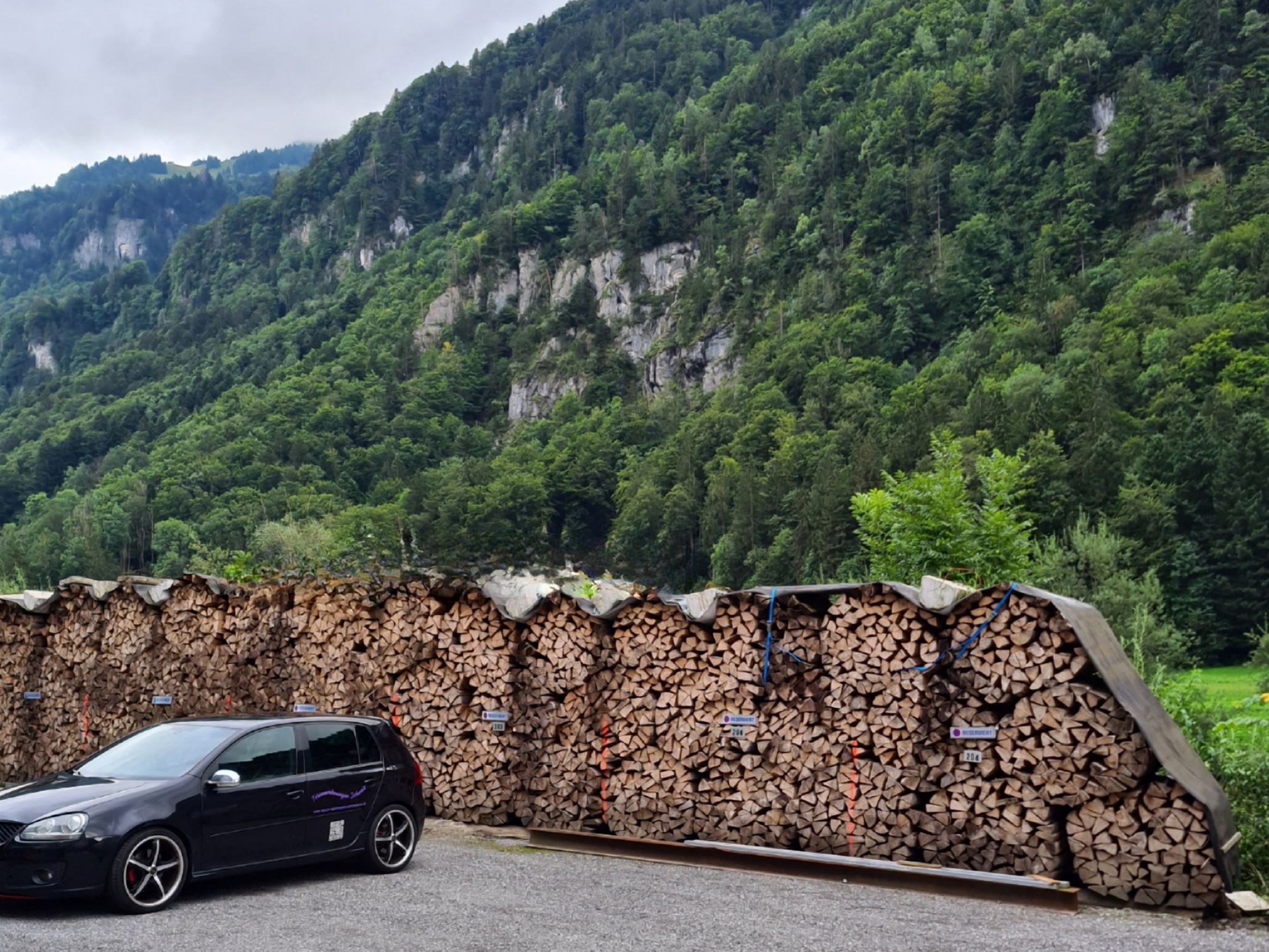 Ein Parkplatz steht am Haus zur Verfügung und die Bushaltestelle Ried/Mühlestuden befindet sich in unmittelbarer Nähe.