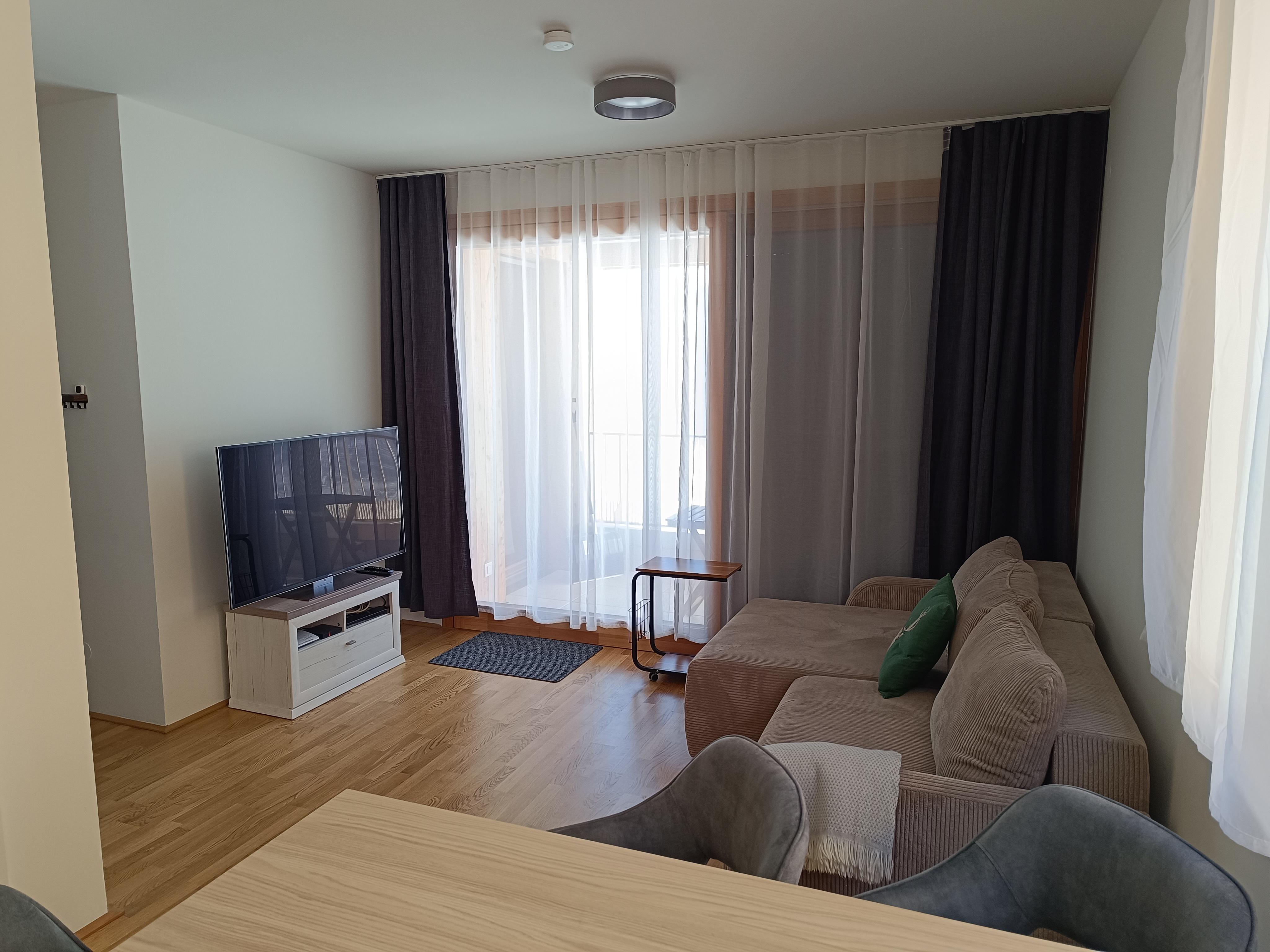 Die Ferienwohnung ist 44 m² groß und verfügt über Fußbodenheizung und Rollläden. Der Balkonzugang erfolgt über das geräumige Wohn-/Esszimmer inkl. SMART-TV und über das Schlafzimmer. Die Wohnung bietet 1 Doppelzimmer, 1 Badezimmer mit Dusche, WC sowie eine Schlafcouch für 2 Personen im Wohnzimmer. Die Piste ist direkt vor der Haustüre.
