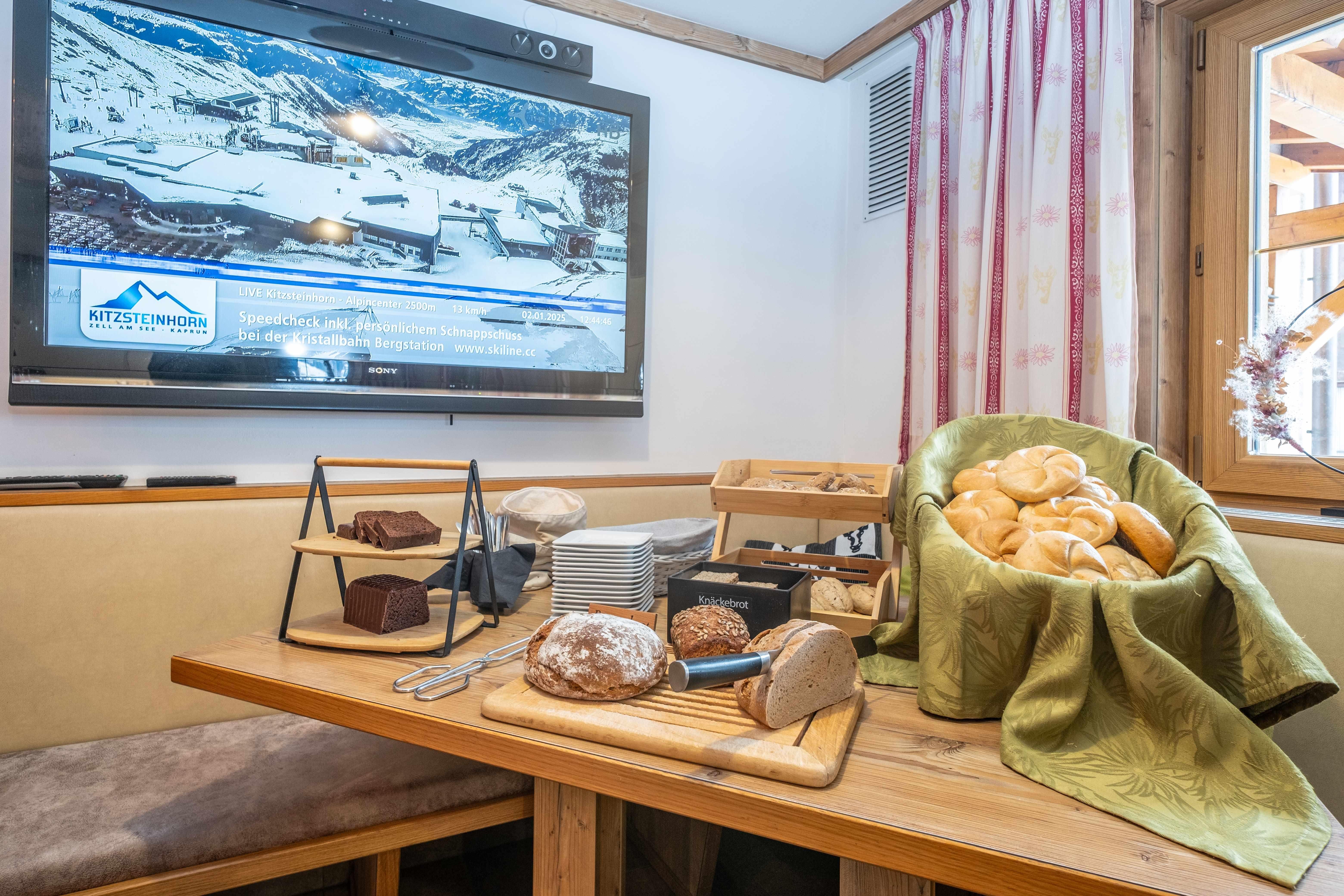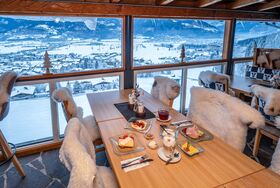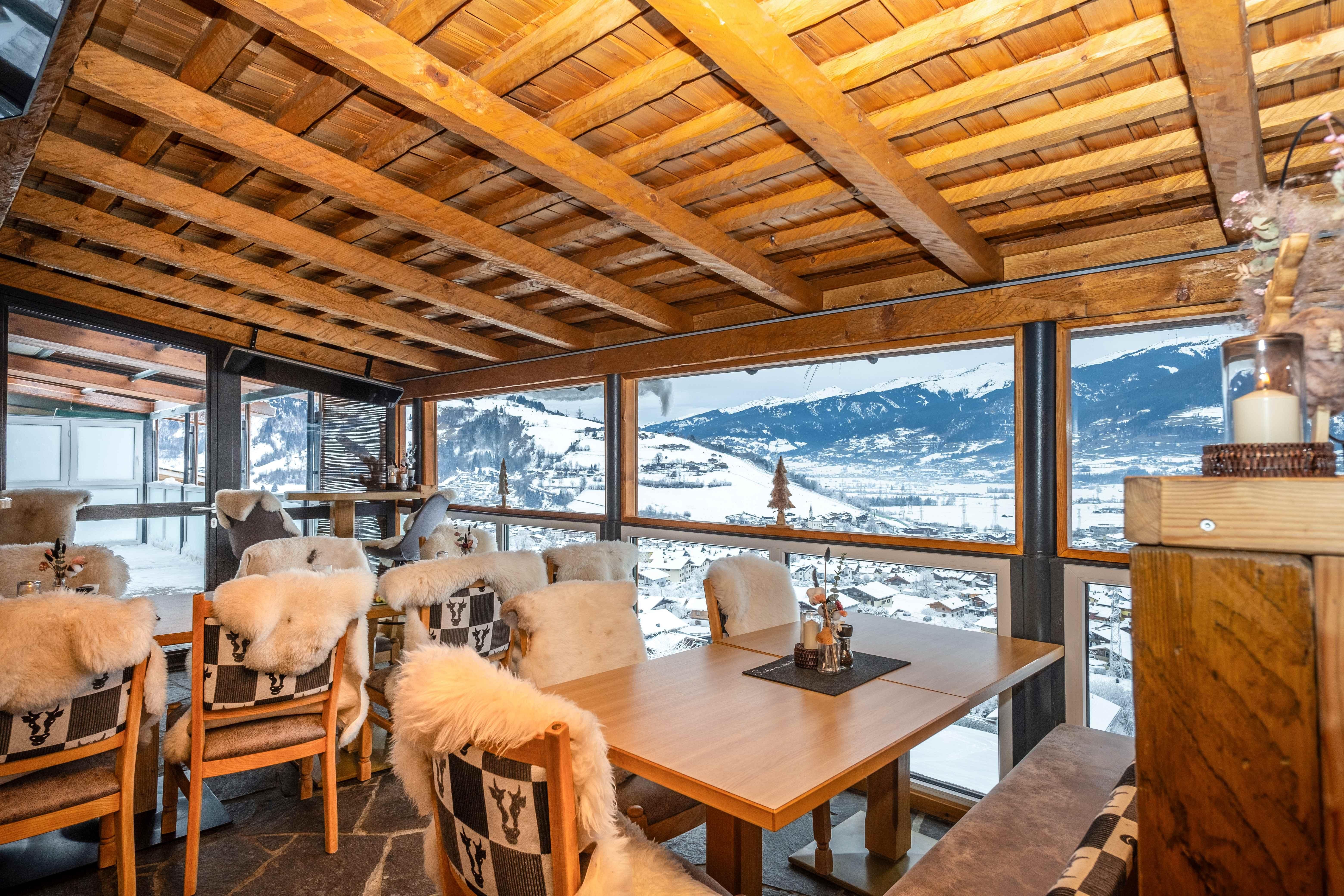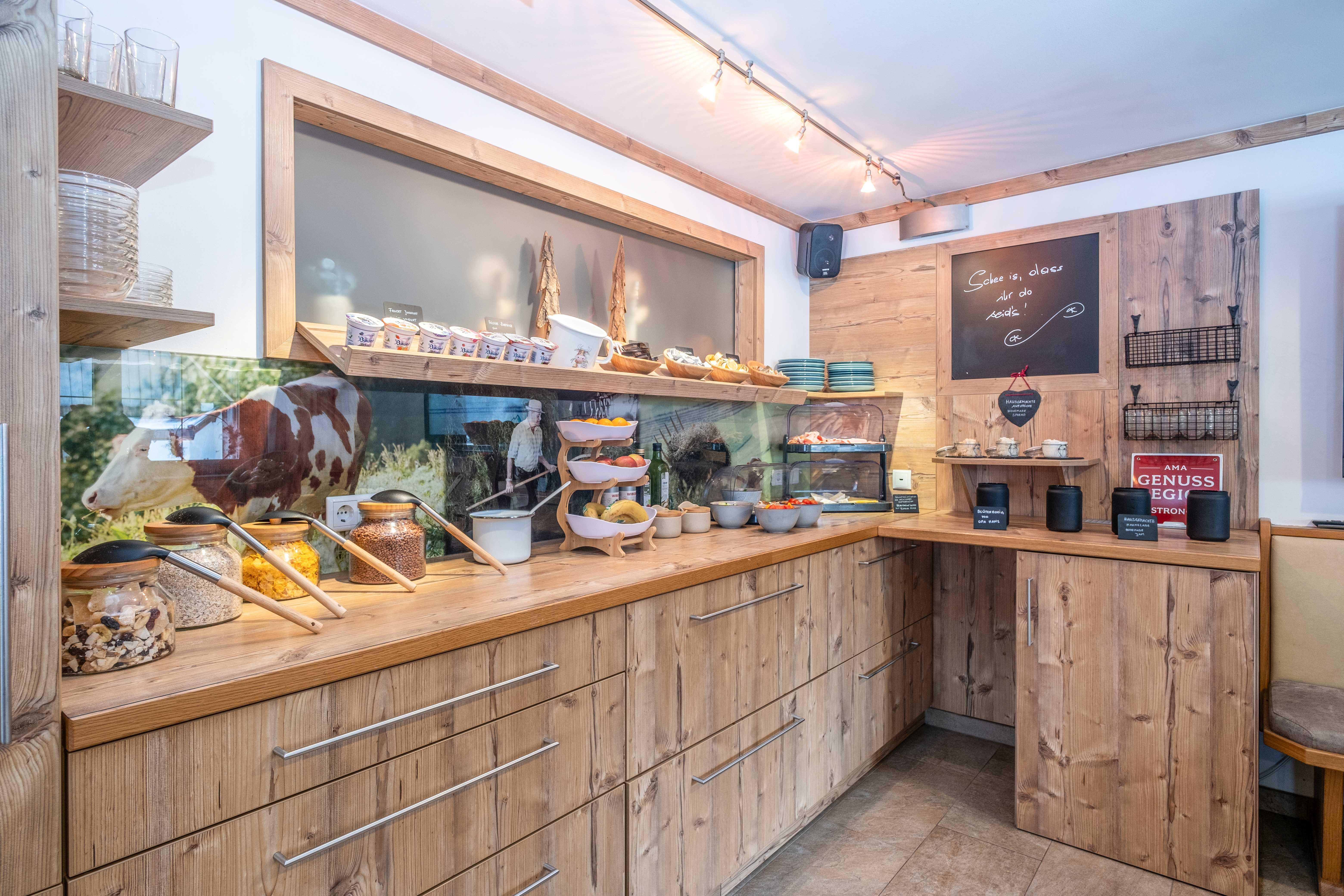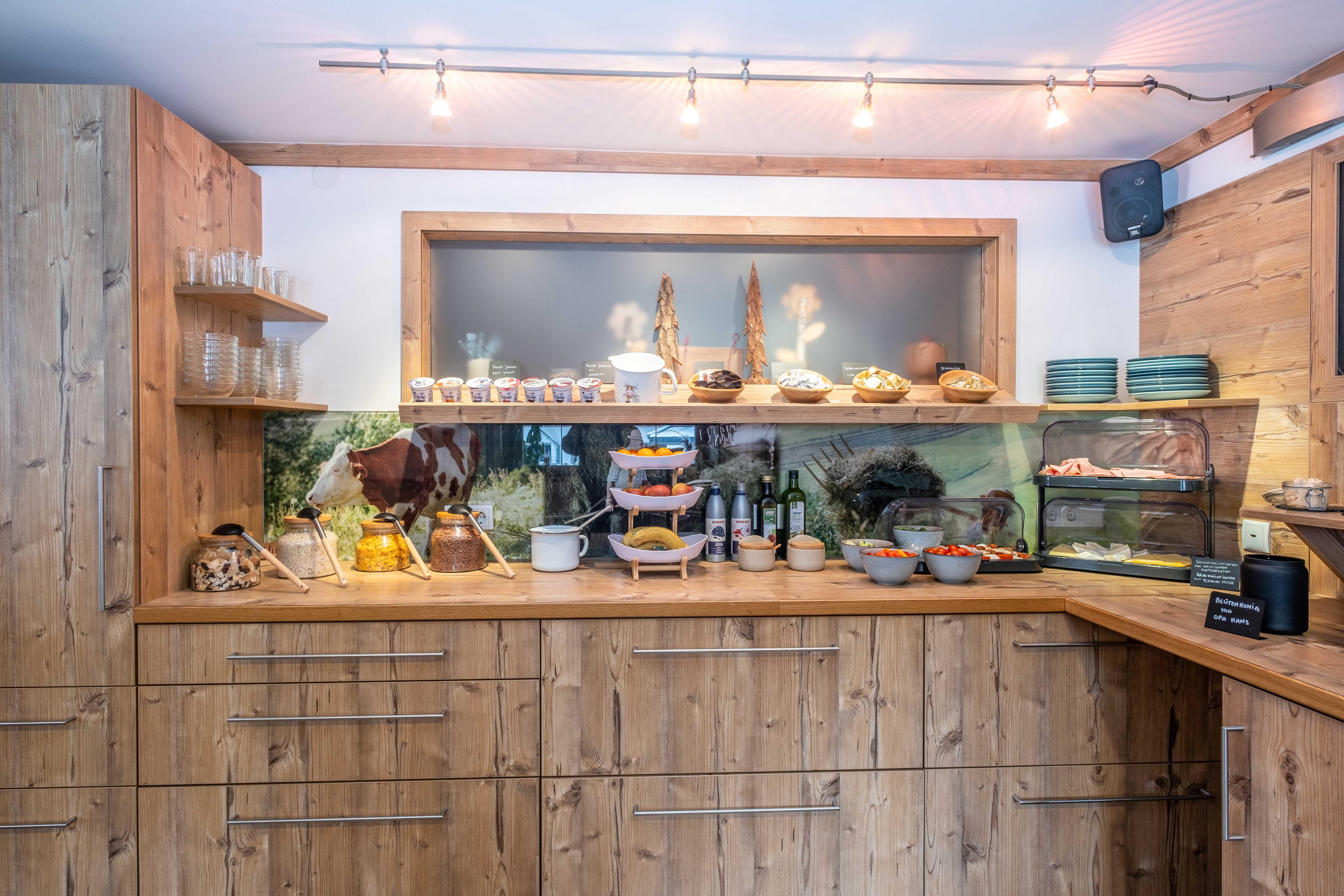 • 100% regionales Frühstückbuffet mit frischen, selbstgemachten und qualitativ hochwertigen Produkten auf der Panorama Terrasse Sommer wie Winter