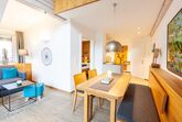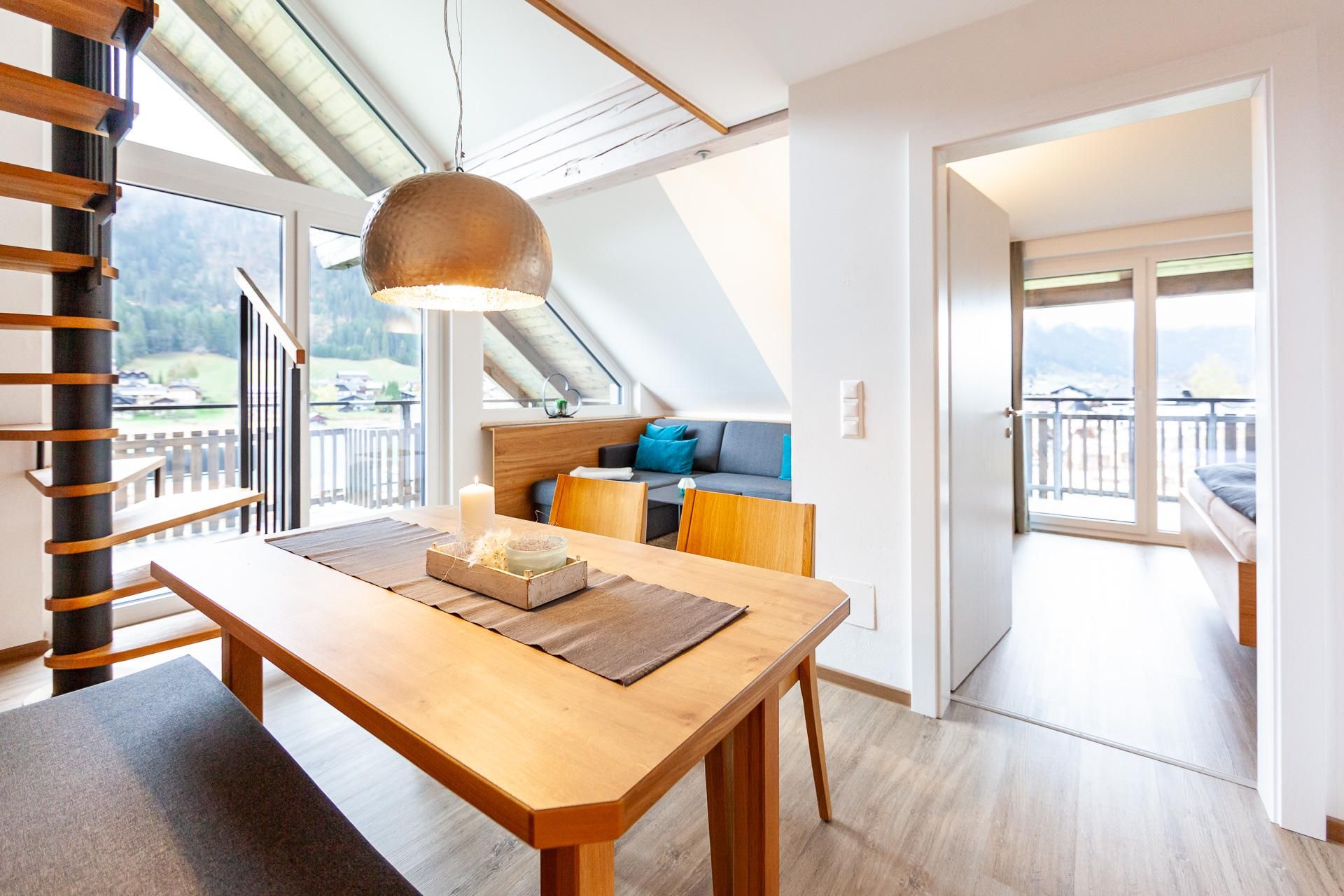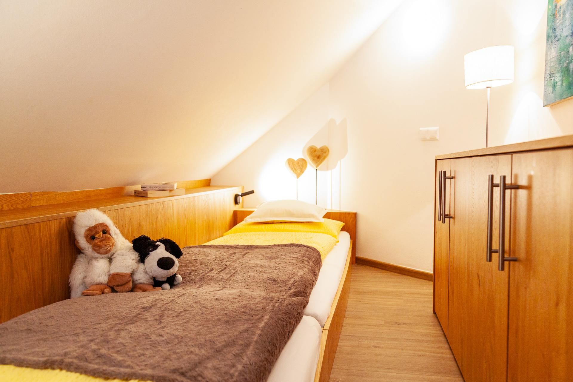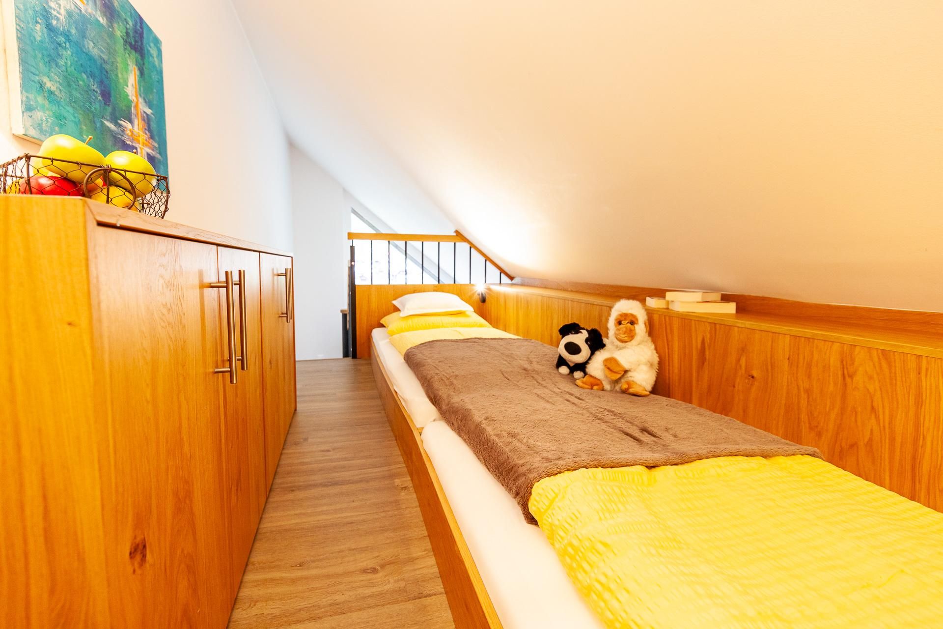 Eine besondere Charakteristik dieser beiden Wohnungen ist die offene Galerie im Wohnraum, die durch die Dachschräge geschaffen wurde. Auf der Galerie befinden sich zwei Betten (hintereinander gereiht), die den Wohnbereich zusätzlich bereichern.