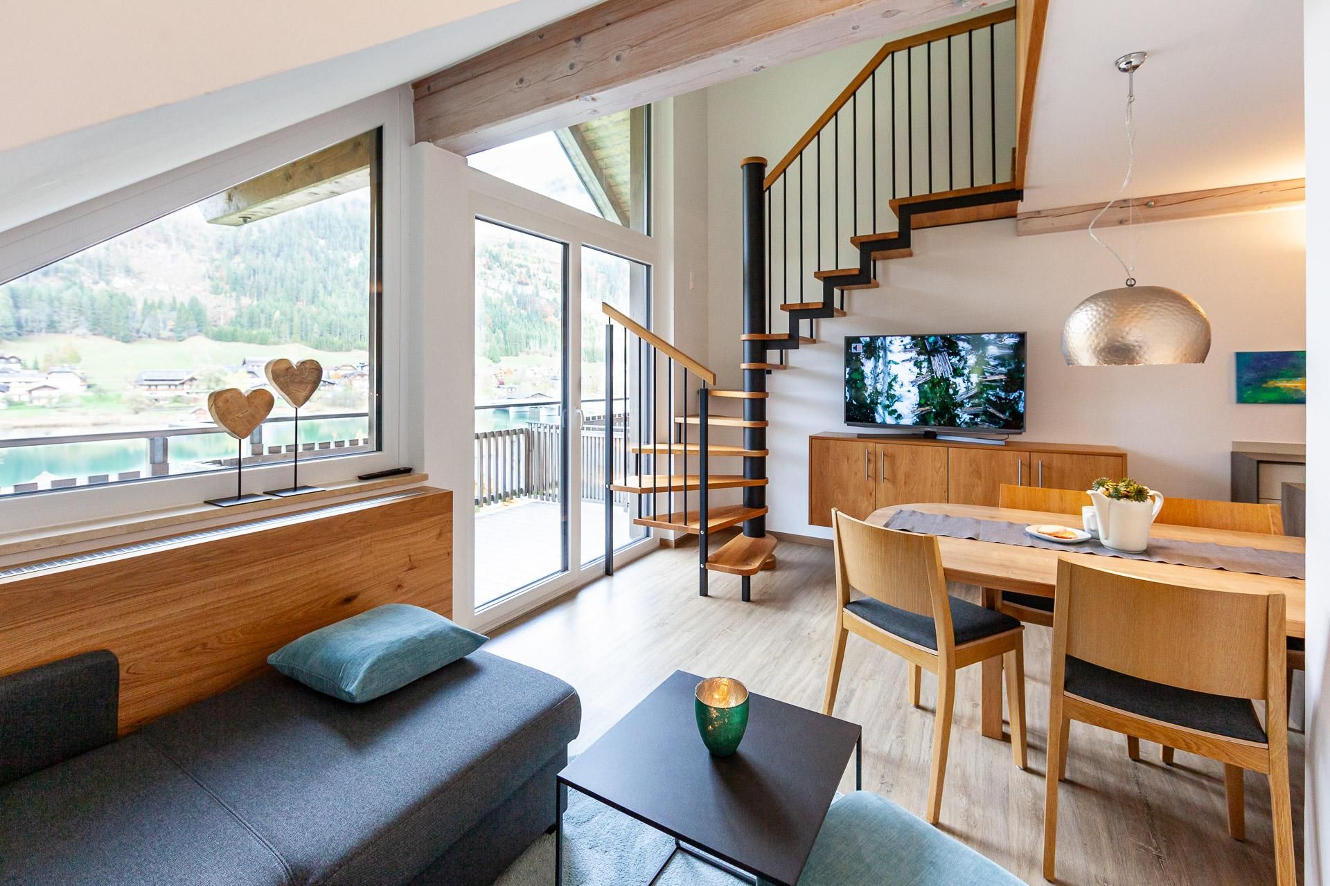 Diese beiden Dachgeschosswohnungen bieten ein besonderes Ambiente und großzügigen Raum – erreichbar bequem über einen Aufzug. Jede Wohnung verfügt über zwei Balkone: Einer mit herrlichem Blick auf den See, der andere entweder Richtung Westen (Seehaus 15) oder Osten (Seehaus 14), sodass Sie die Sonne wunderbar genießen können.