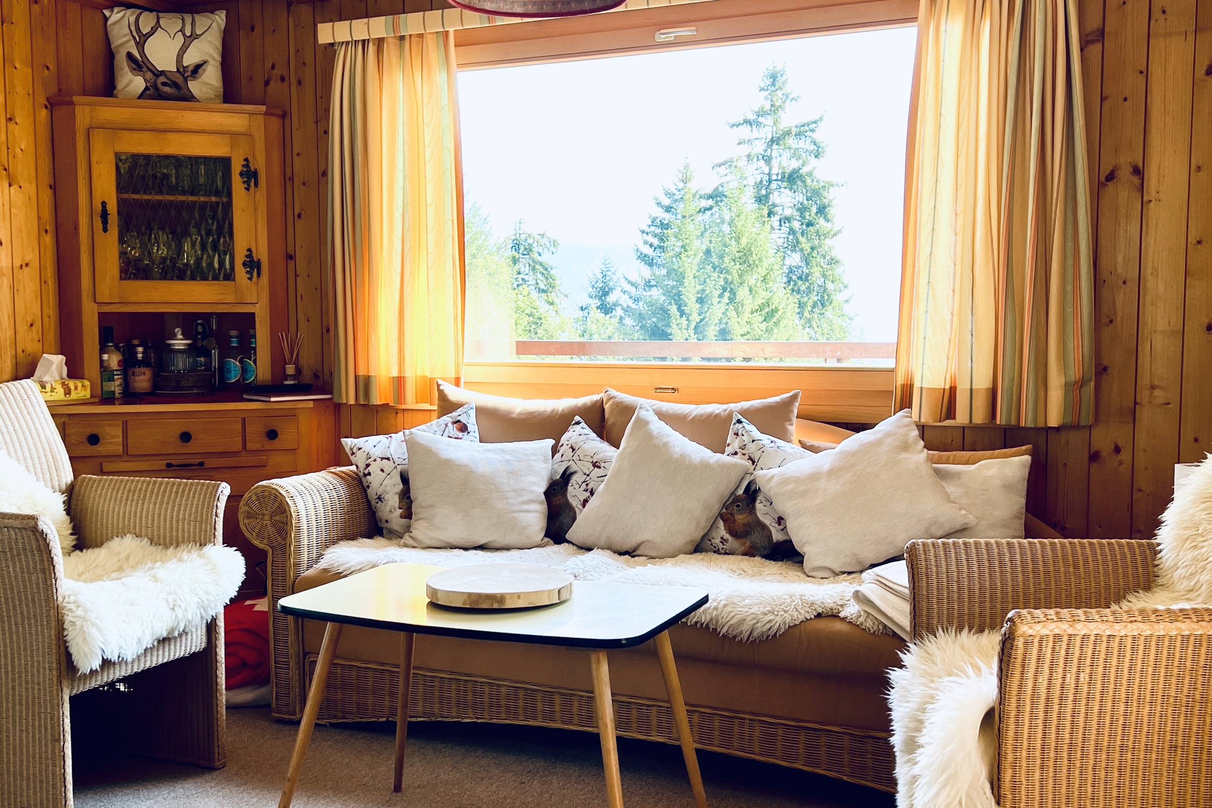 Die Ferienwohnung ist komfortabel und gemütlich eingerichtet und verfügt über ein offenes Wohnzimmer mit Sofas, Lesesessel und Flachbild-TV inkl. digitales Radio sowie einen Essbereich mit Esstisch, Eckbank und Stühlen. Zur Wohnung gehört eine Terrasse in L-Form mit grossartiger Aussicht Richtung Süden und Osten und ein geheizter Skiraum. Zudem ist in der ganzen Wohnung kostenloses WLAN vorhanden. Im Parterre befindet sich eine Sauna (Benützung bei Buchung ab 5 Personen).