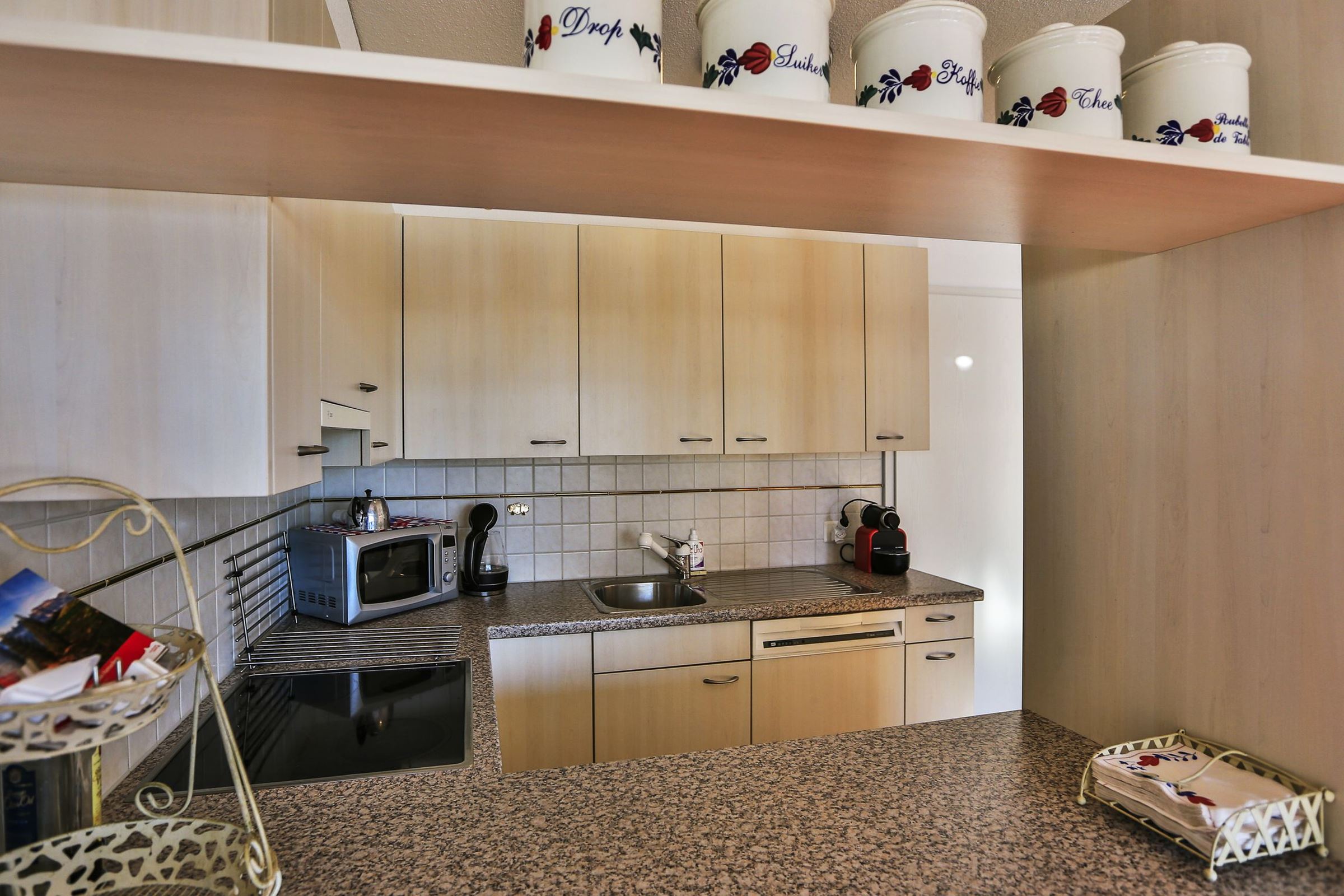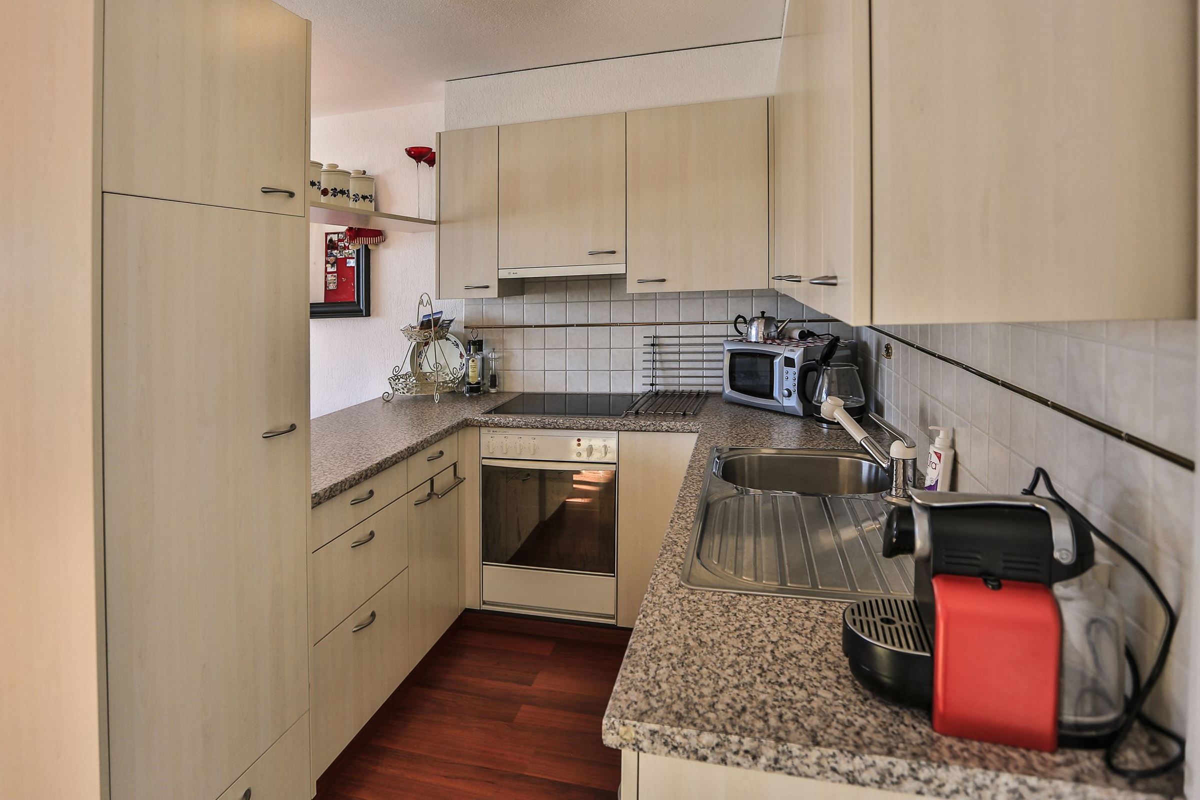 Die Küche ist vollständig ausgestattet mit Kühlschrank, Kochherd, Backofen, Geschirrspüler sowie Wasserkocher und Fondue/Racletteofen. Inneneinrichtung