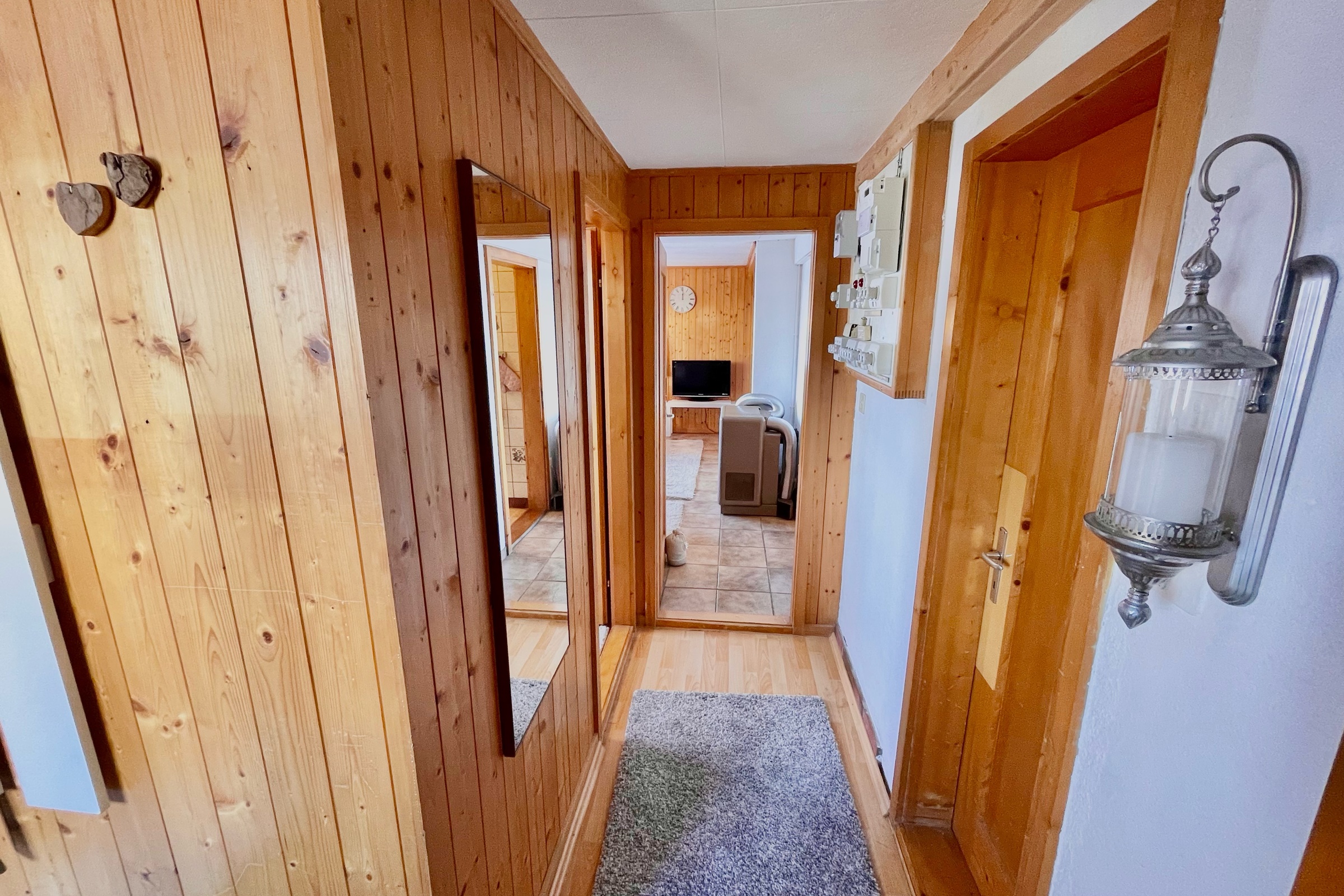 Das Chalet ist im Holzstil gebaut und gemütlich eingerichtet. Die Wohnung verfügt über einen Sommergarten mit Gartenmöbel und Sitzbereich. Im Erdgeschoss befindet sich ein grosser Eingangsbereich zum Aufbewahren von Skischuhen und Ausrüstung. Das Chalet verfügt über einen Garagenplatz und einen Aussenplatz vor der Garage.Technische Einrichtung
