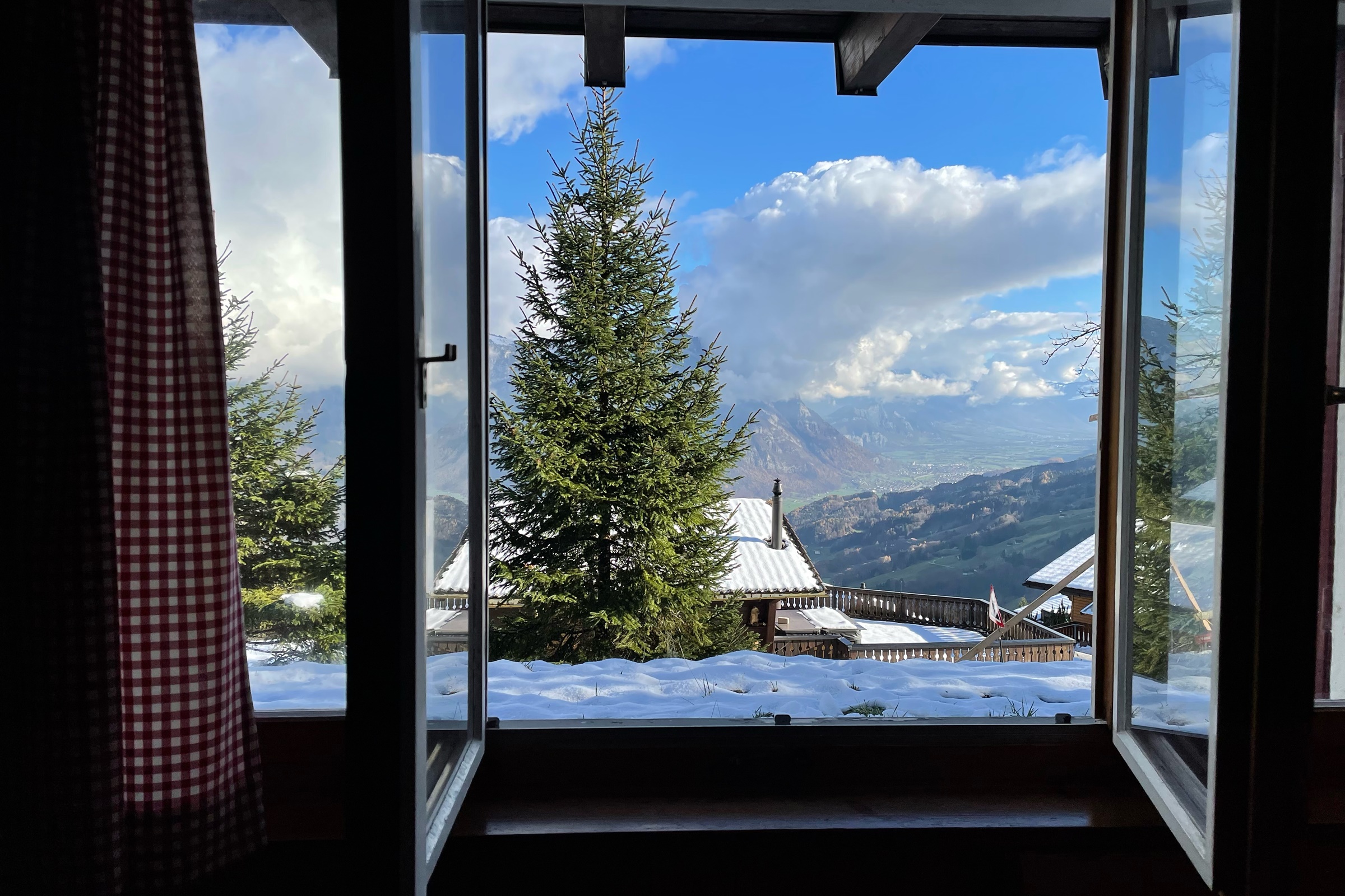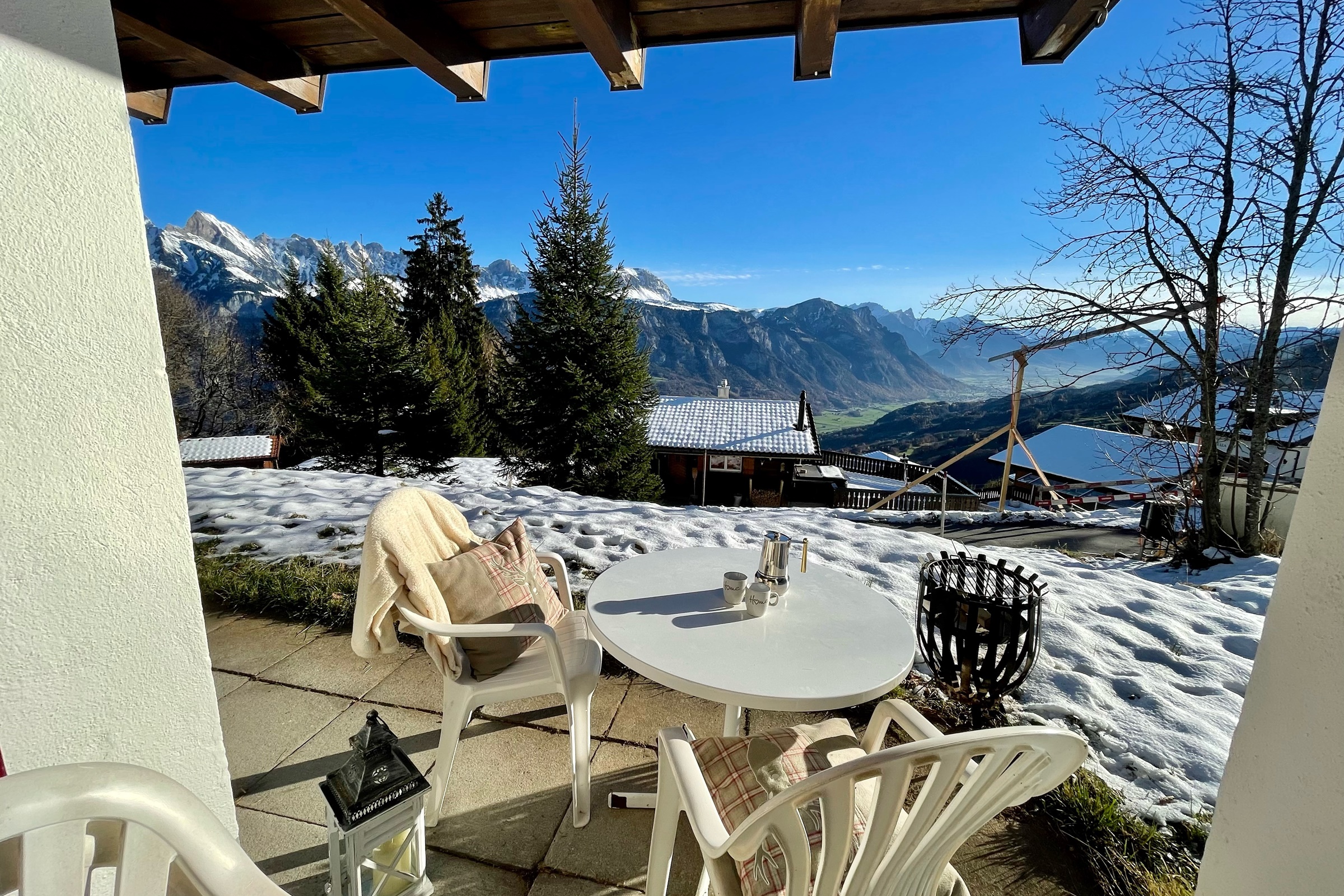 Die gemütliche 2.5-Zimmerwohnung im Erdgeschoss des Chalet Felsenberg bietet eine traumhafte Aussicht auf die Churfirsten. Vom Chalet sind es 12 Gehminuten bis zur Bergbahn Talstation Prodalp-Express.Gesamtgrösse Ferienwohnung