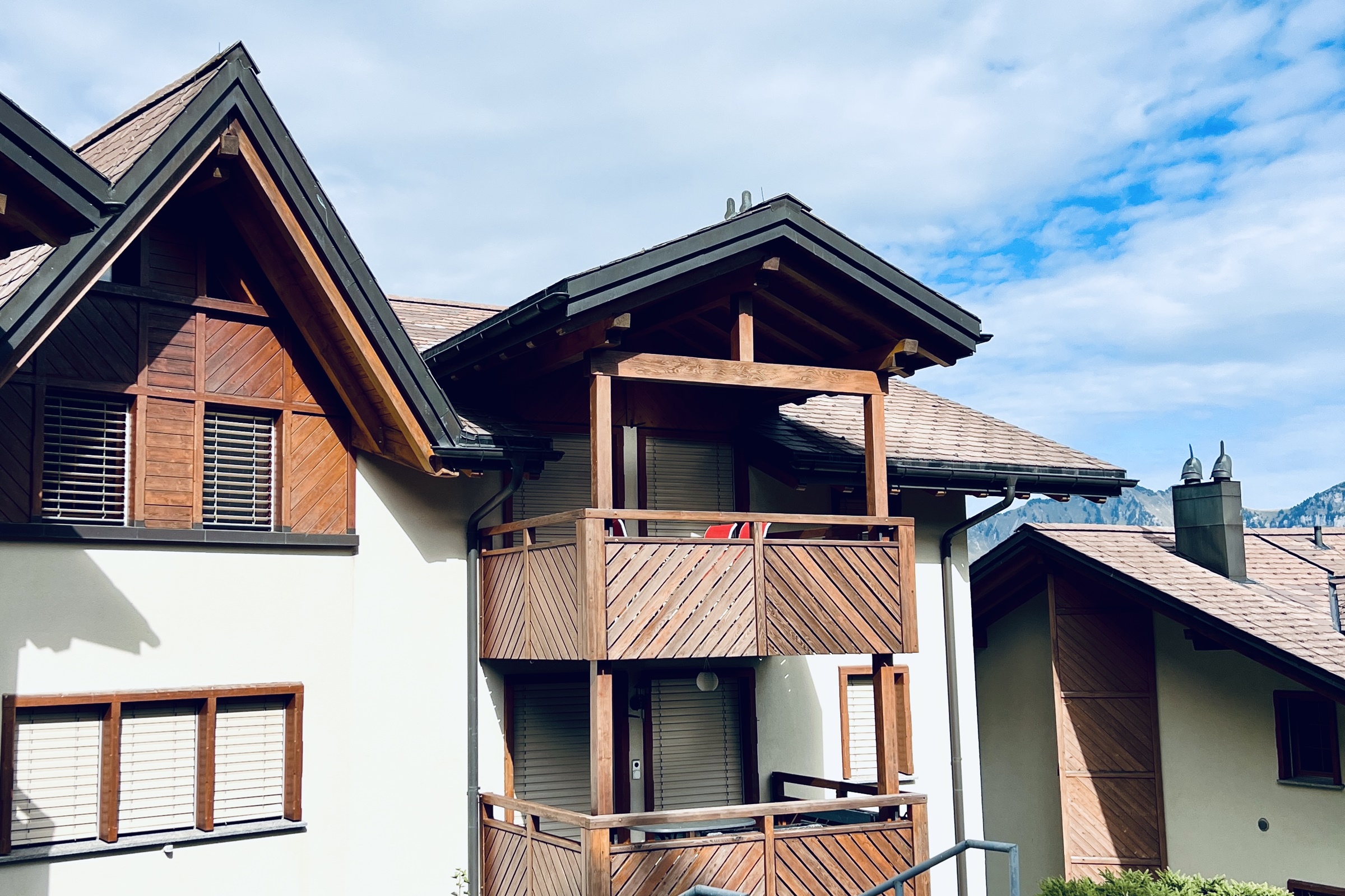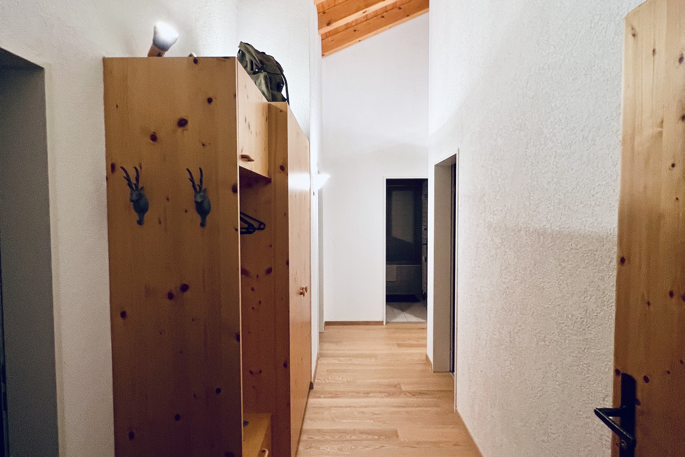 Die Ferienwohnung ist gemütlich eingerichtet und verfügt über einen Balkon mit Sicht auf die umliegenden Bergketten. Im Wohnhaus befindet sich eine Waschmaschine und ein Wäschetrockner. Zur Ferienwohnung gehört ein Garagenparkplatz und ein Aussenparkplatz. Technische Einrichtung