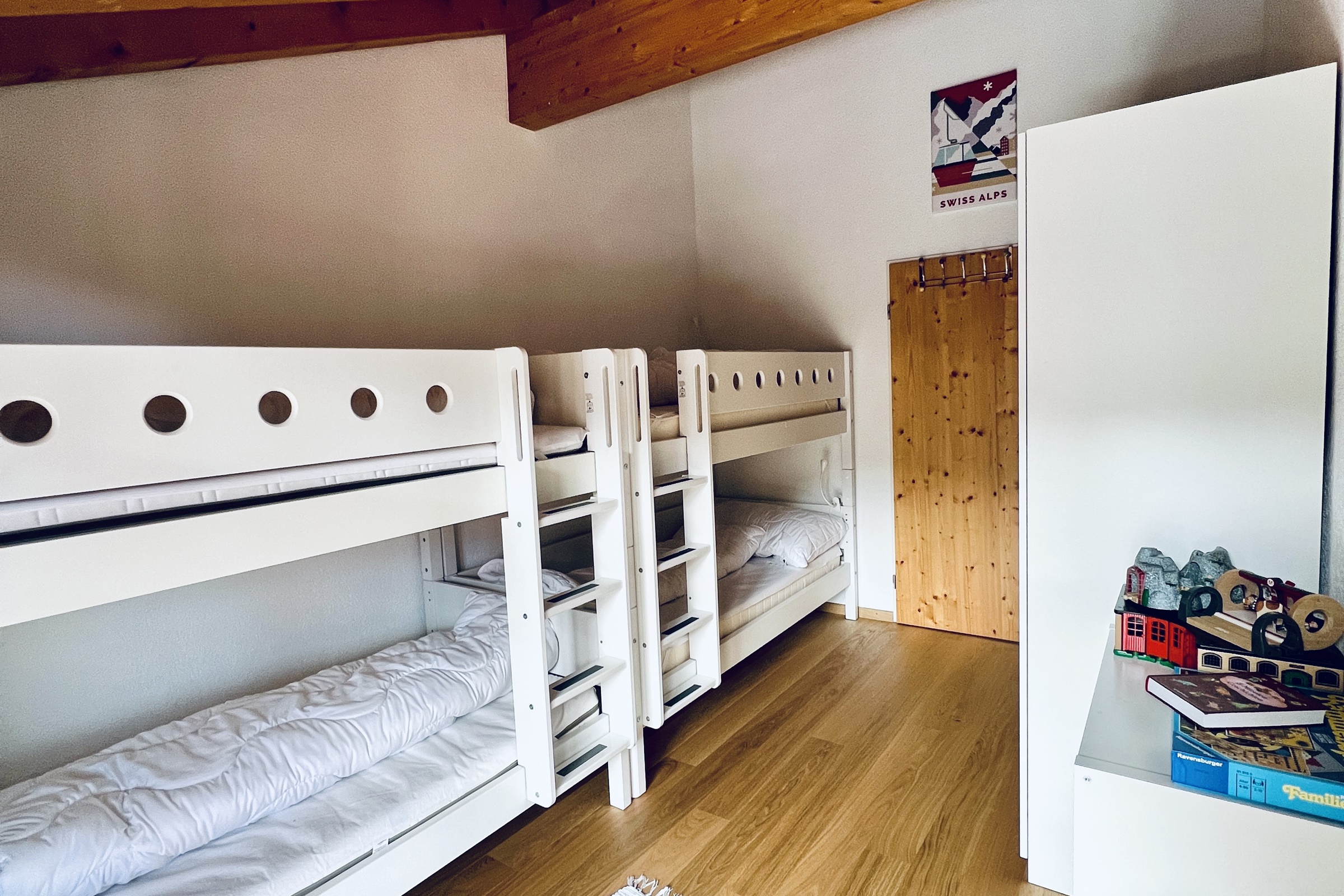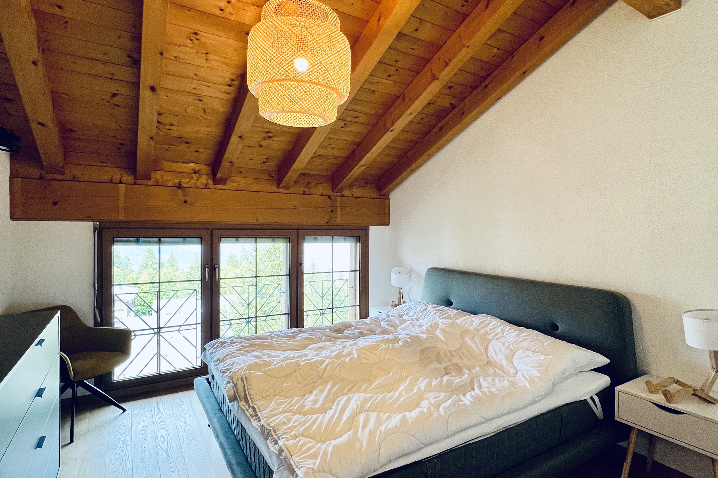 3 Schlafräume, Babyhochstuhl, Backofen, Balkon, Cheminée, DVD-Player, Fondue-Set, Geschirrspüler, Grillmöglichkeit, Haustiere nicht erlaubt, Kaffeemaschine, Küche, Kühlschrank, Nichtraucherzimmer-/wohnung, Raclette-Set, Töpfe Pfannen Geschirr, TV, Wäschetrockner, Wäschetrockner im Haus, Waschmaschine, Waschmaschine im Haus, Wasserkocher, WiFi