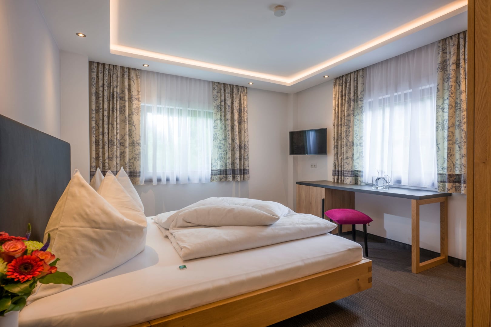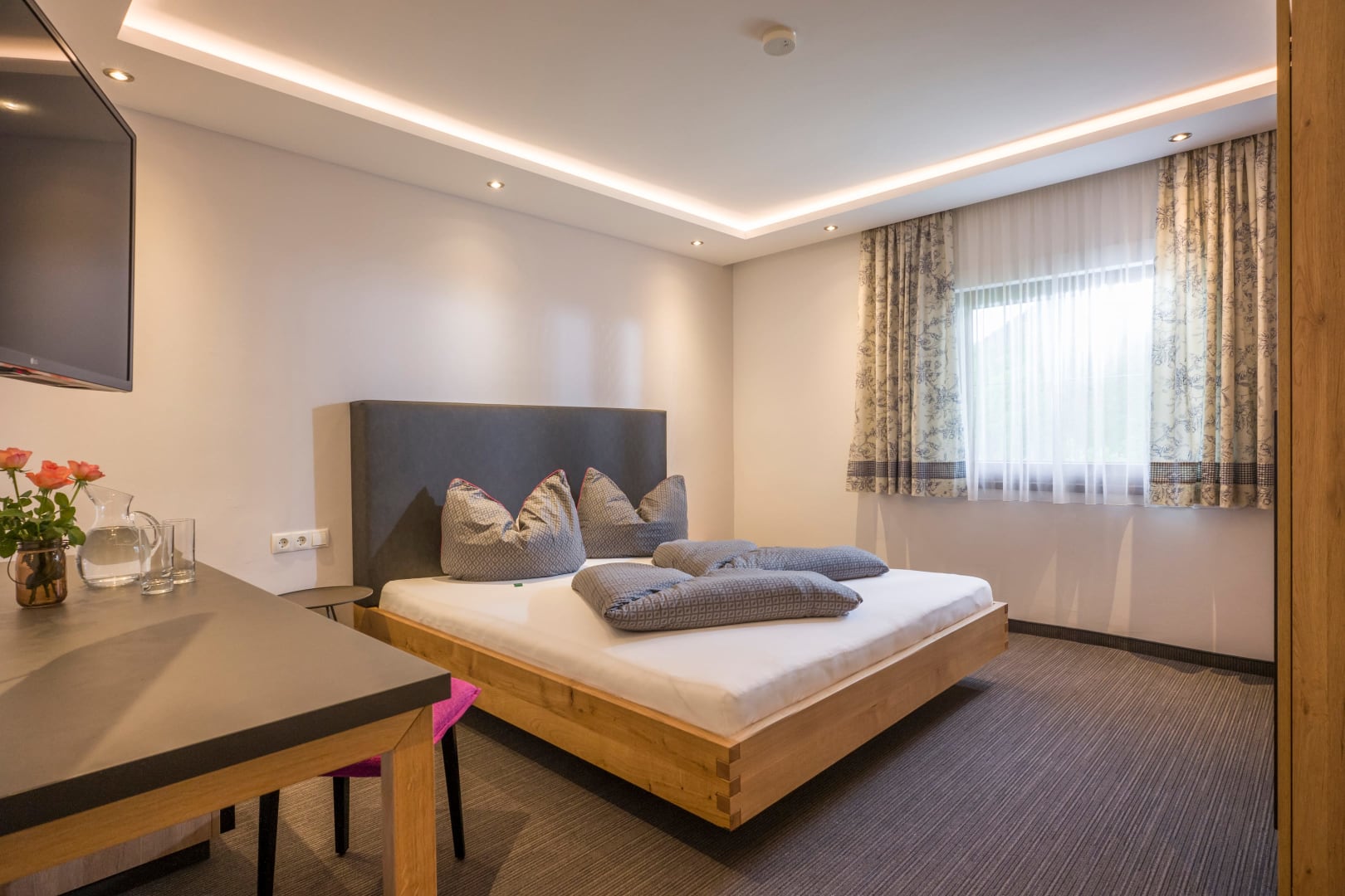 Alle unsere Doppel- und Dreibettzimmer sind geschmackvoll eingerichtet. Damit Sie sich auch im Urlaub sofort wie zu Hause fühlen können.