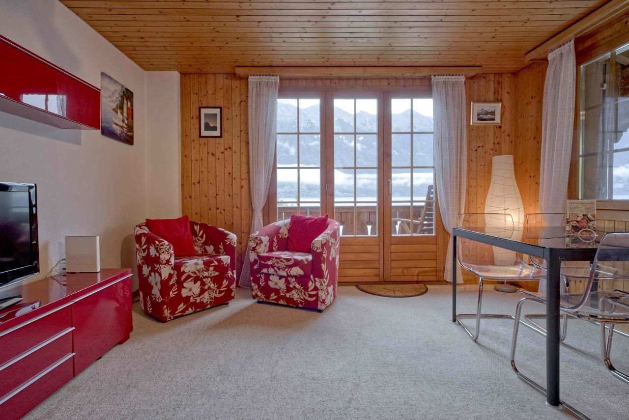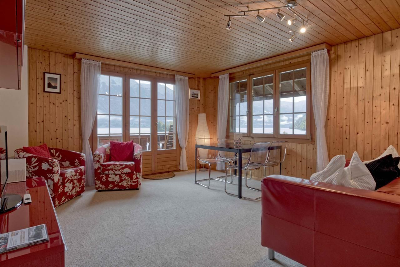 Auf 62m2 bietet die gemütliche 3.5-Zimmerwohnung ein Schlafzimmer mit Doppelbett und Seeblick, ein Schlafzimmer mit Doppelbett sowie ein Badezimmer mit Badewanne und WC. Die Küche ist top ausgerüstet und öffnet sich zu einem hellen Wohn- und Essbereich. Vom Balkon aus geniessen Sie eine tolle Aussicht über den Brienzersee und die umliegende Bergwelt. Die Wohnung befindet sich im zweiten Stock des Gebäudes.