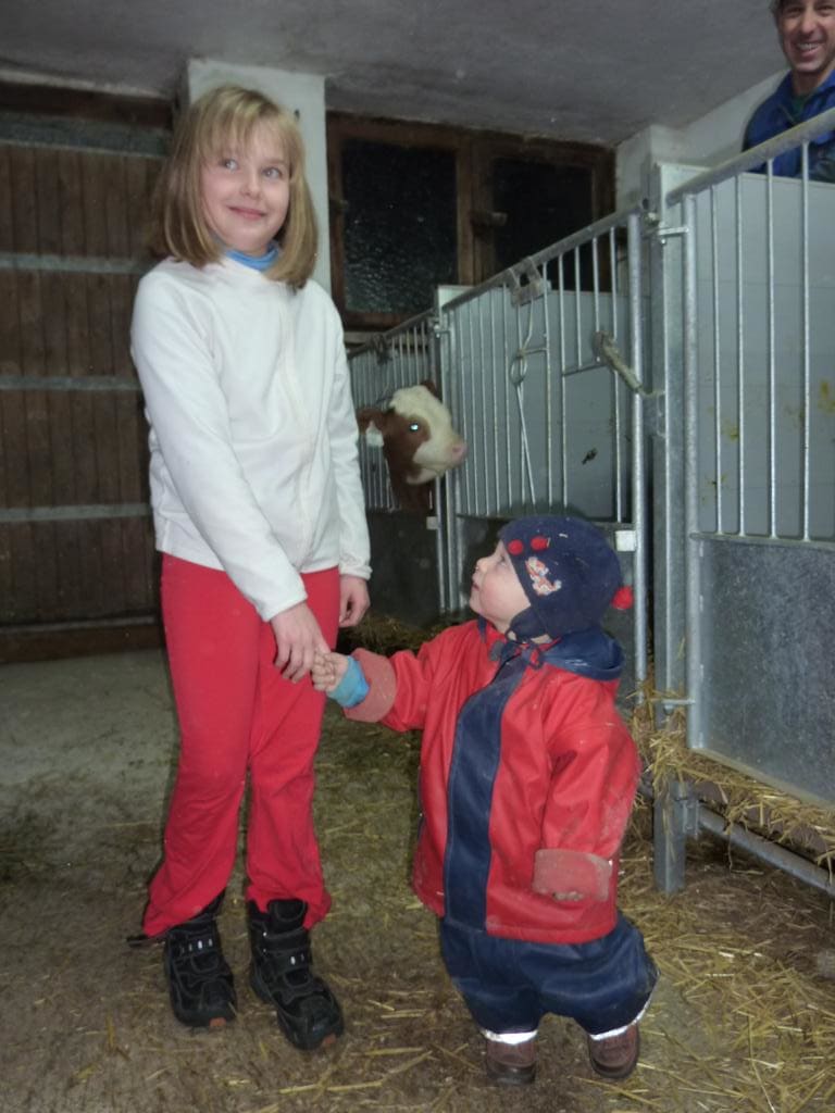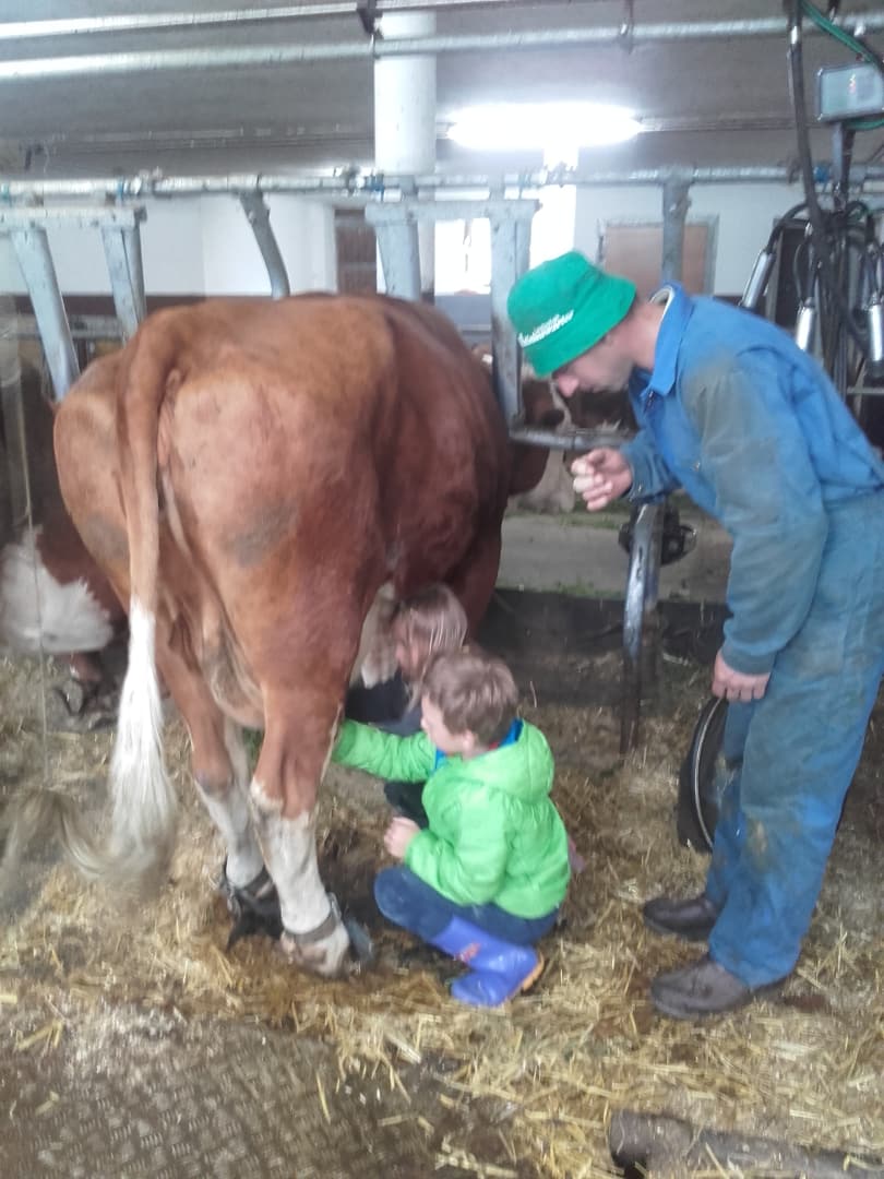 Auch zu finden am Hof sind unsere Katzen, Zwergschafe und Hasen. Die Ponys Rosy und Silke, freuen sich immer auf einen Besuch. Zu den Stallzeiten darf auch beim Füttern und Melken der Kühe mitgeholfen werden.
