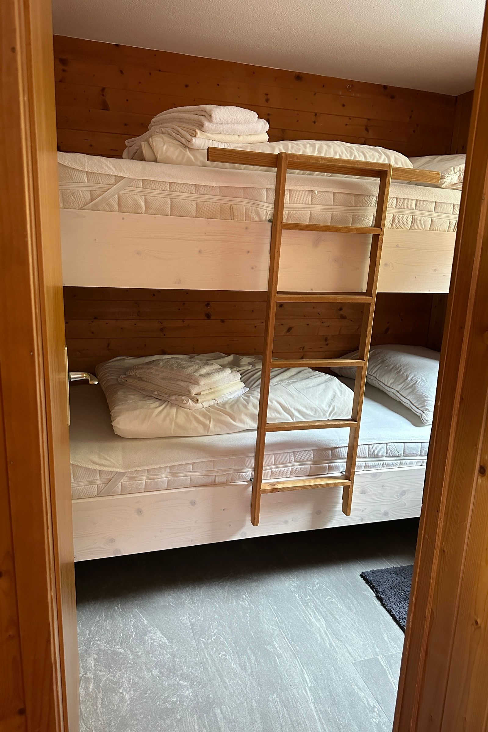 Das heimelige Ferienchalet ist gemütlich und mit viel Holz eingerichtet. Die Wände im Wohn-und Schlafzimmer sind getäfert. Zum Chalet gehört ein Sitzplatz mit Cheminée mit Spielwiese sowie ein Aussen-Whirlpool. Im Wohnzimmer befindet sich ein TV und ein Radio. WLAN ist in der Wohnung kostenlos vorhanden.