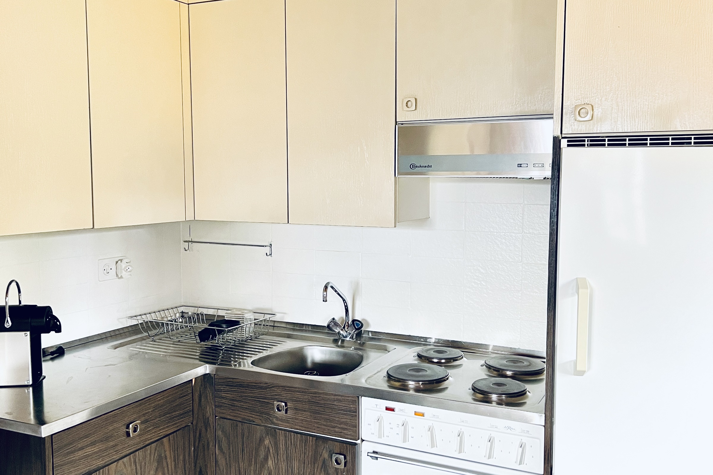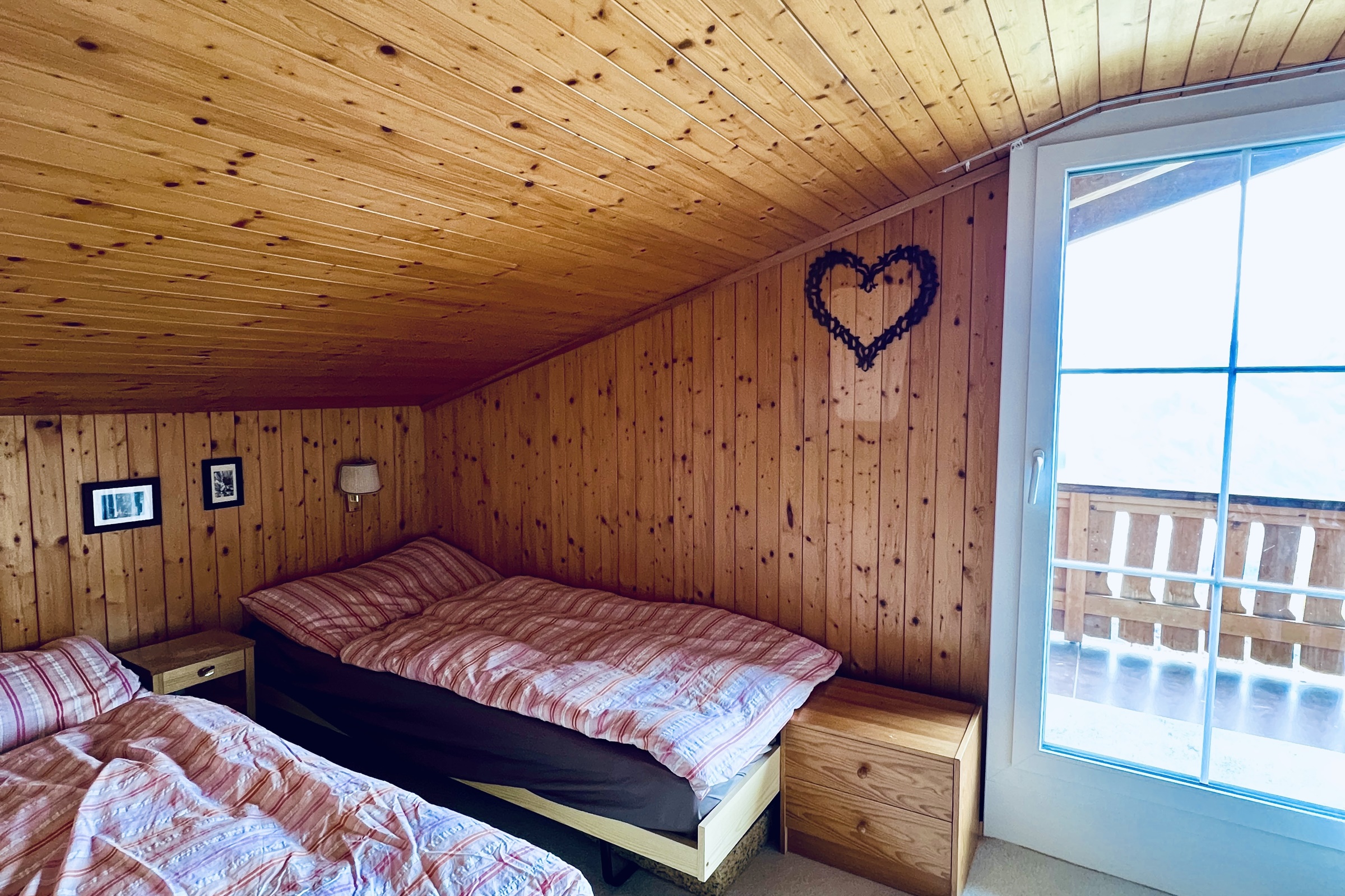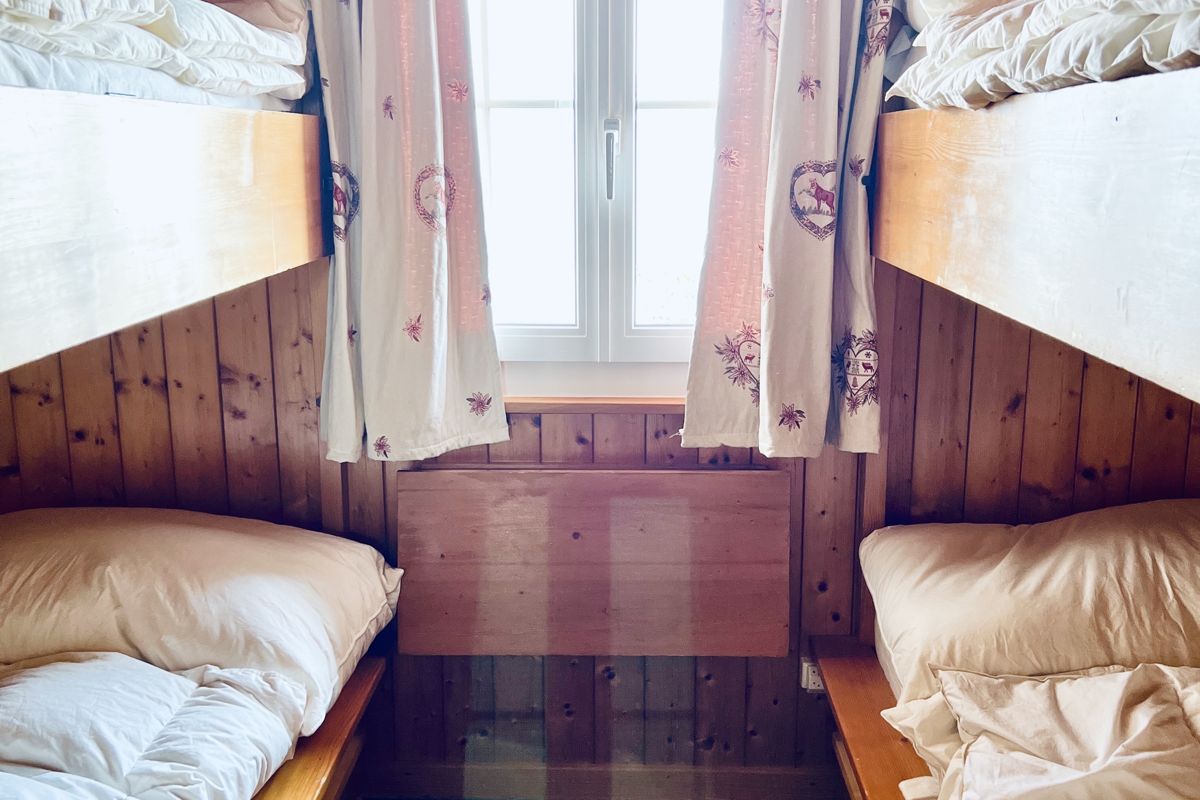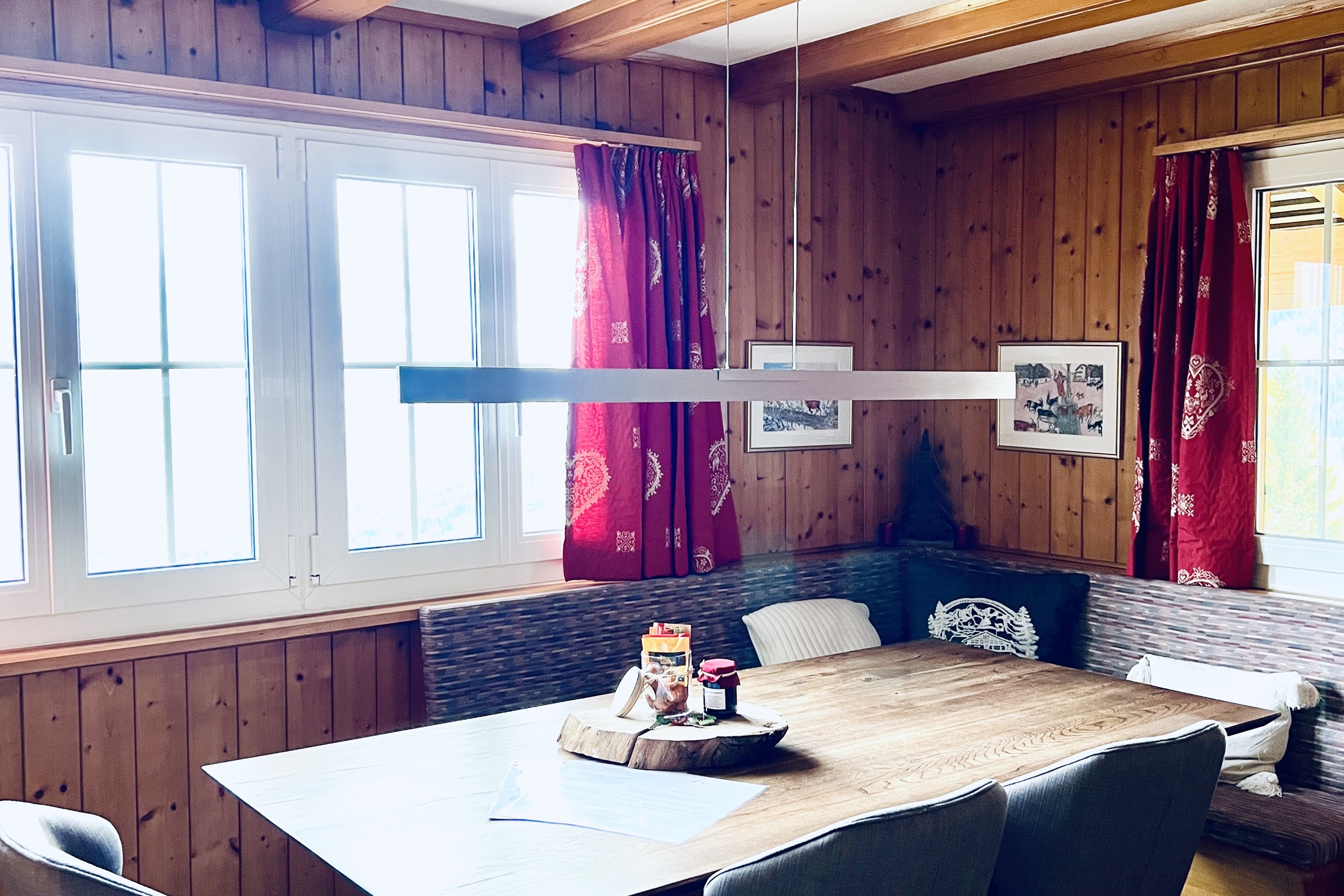 Die 2.5 Zimmer-Wohnung verfügt über ein Schlafzimmer mit 4 Kajütenbetten ein Badezimmer mit Dusche/WC, Haarföhn ein Wohnzimmer mit Schrankbett (2 vollwertige Matratzen), Sofa und Essbereich mit grossem Holztisch und Eckbank eine moderne Küche mit Induktionskochfeld, Backofen, Kühlschrank, Geschirrspüler, Kaffee-/Teekocher, Fondue- und Raclettegeschirr Inneneinrichtung & Technik