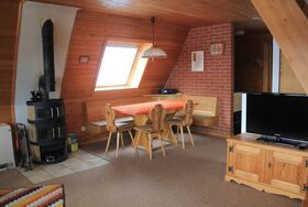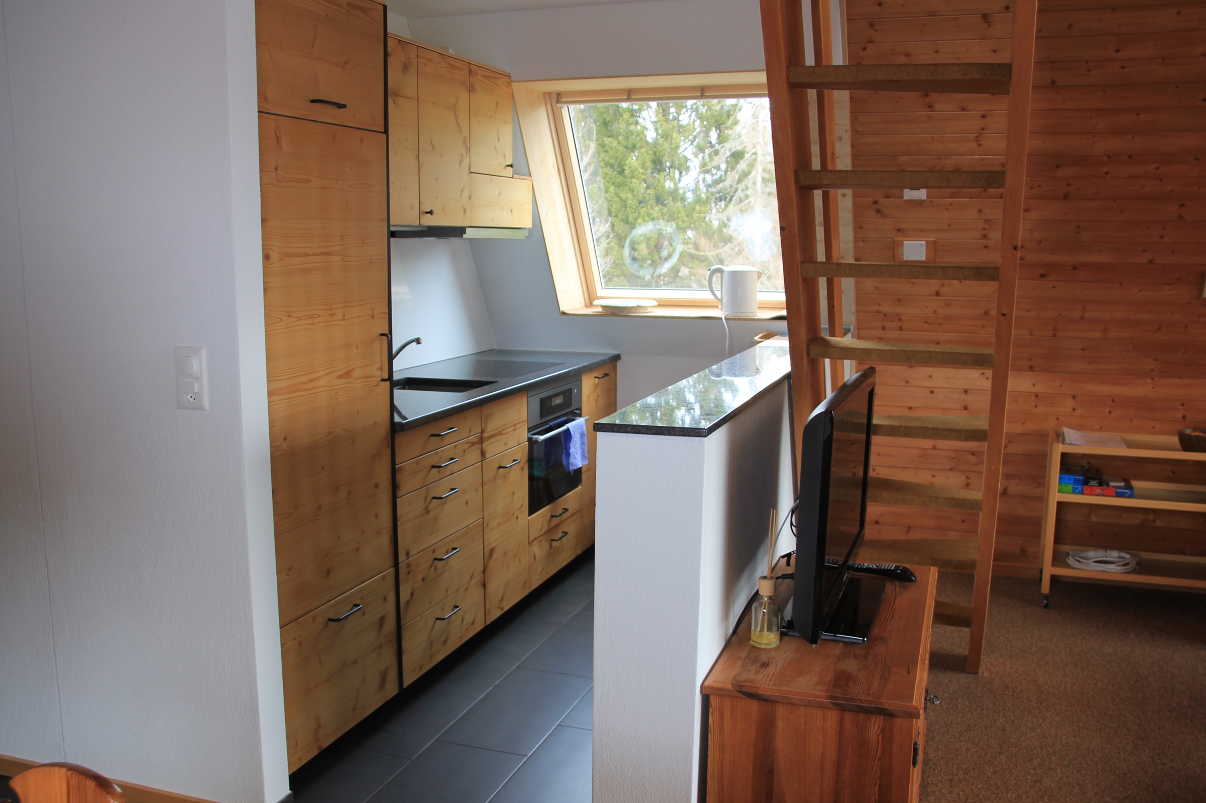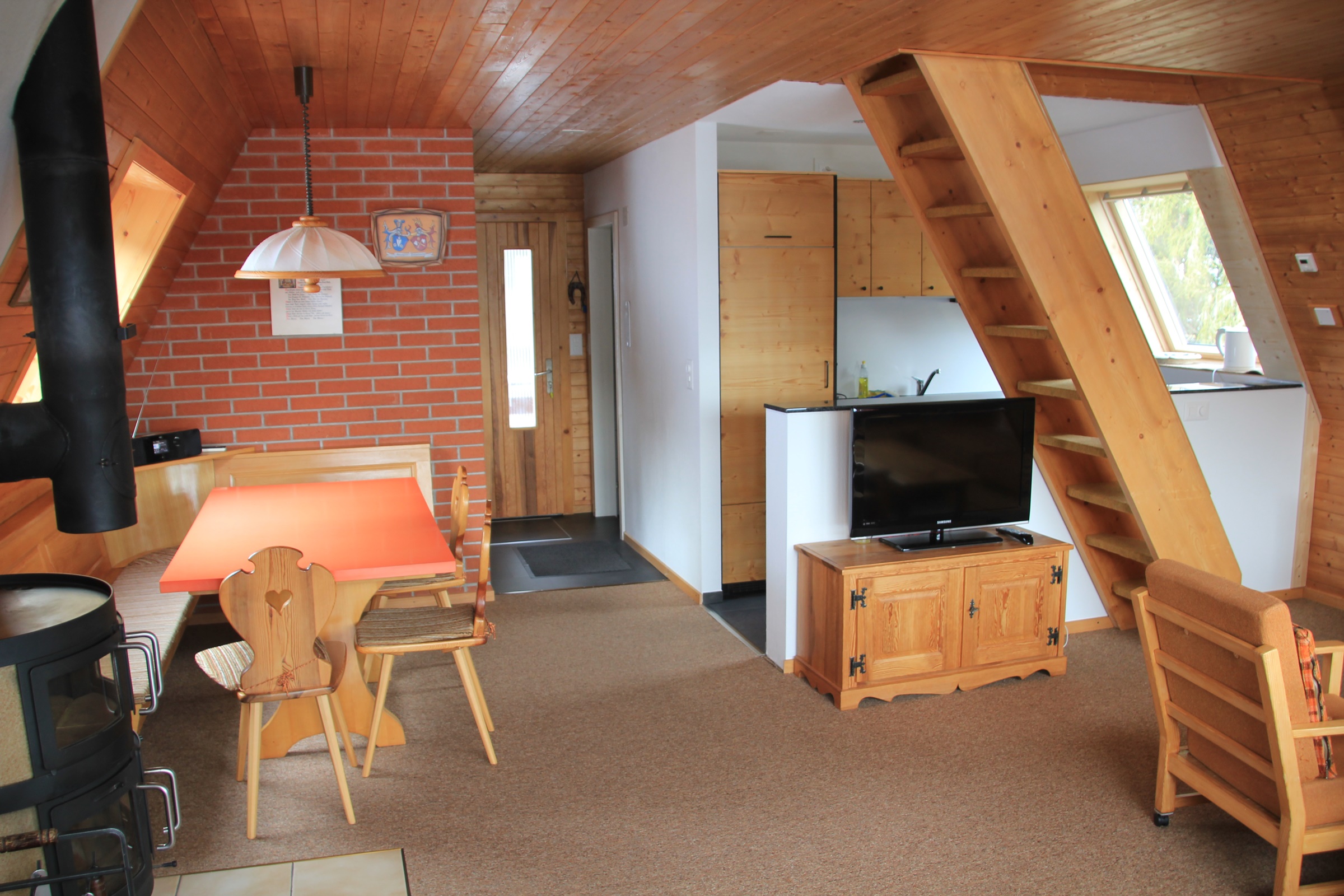 Die Wohnung ist heimelig mit viel Holz eingerichtet. Der Schwedenofen im Wohnbereich macht den Aufenthalt sehr gemütlich. Die ganze Wohnung verfügt über einen Teppichboden. Flachbild-TV und Radio, WLAN ist vorhanden.