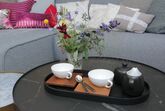 Herzlich willkommen in der Design Ferienwohnung mit luxuriösem, elegantem Interior, schicker Terrasse in parkähnlichem Garten, sehr ruhiger, zentraler Lage mit Blick auf die Chiemgauer Alpen. Sie wohnen in einem alpenländlichen, bayrischen vollständig kernsanierten, ebenerdigen und CO2 frei betriebenen Ferienhaus.