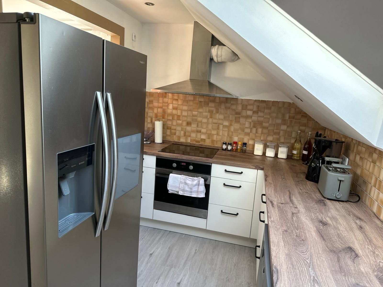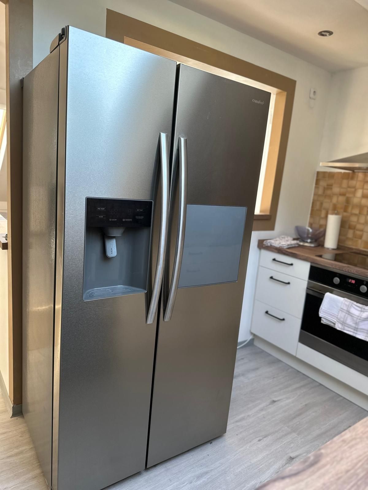 Die Küche ist mit Backofen, Cerankochfeld, Mikrowelle, Kaffeemaschine, Spülmaschine und Side by Side Kühlschrank mit Eiswürfelbereiter ausgestattet. Das Badezimmer verfügt über eine Badewanne sowie über ein separates WC.
