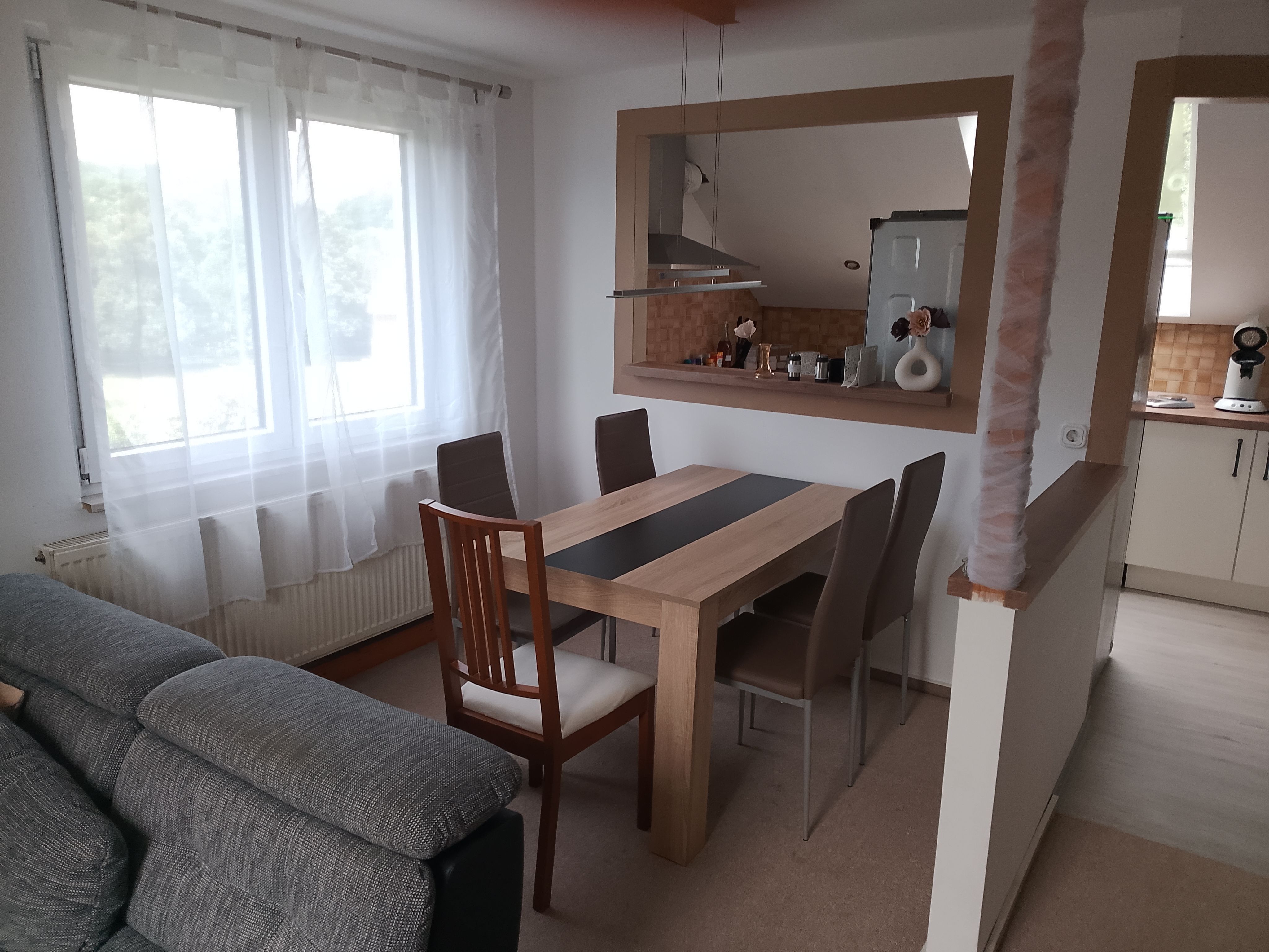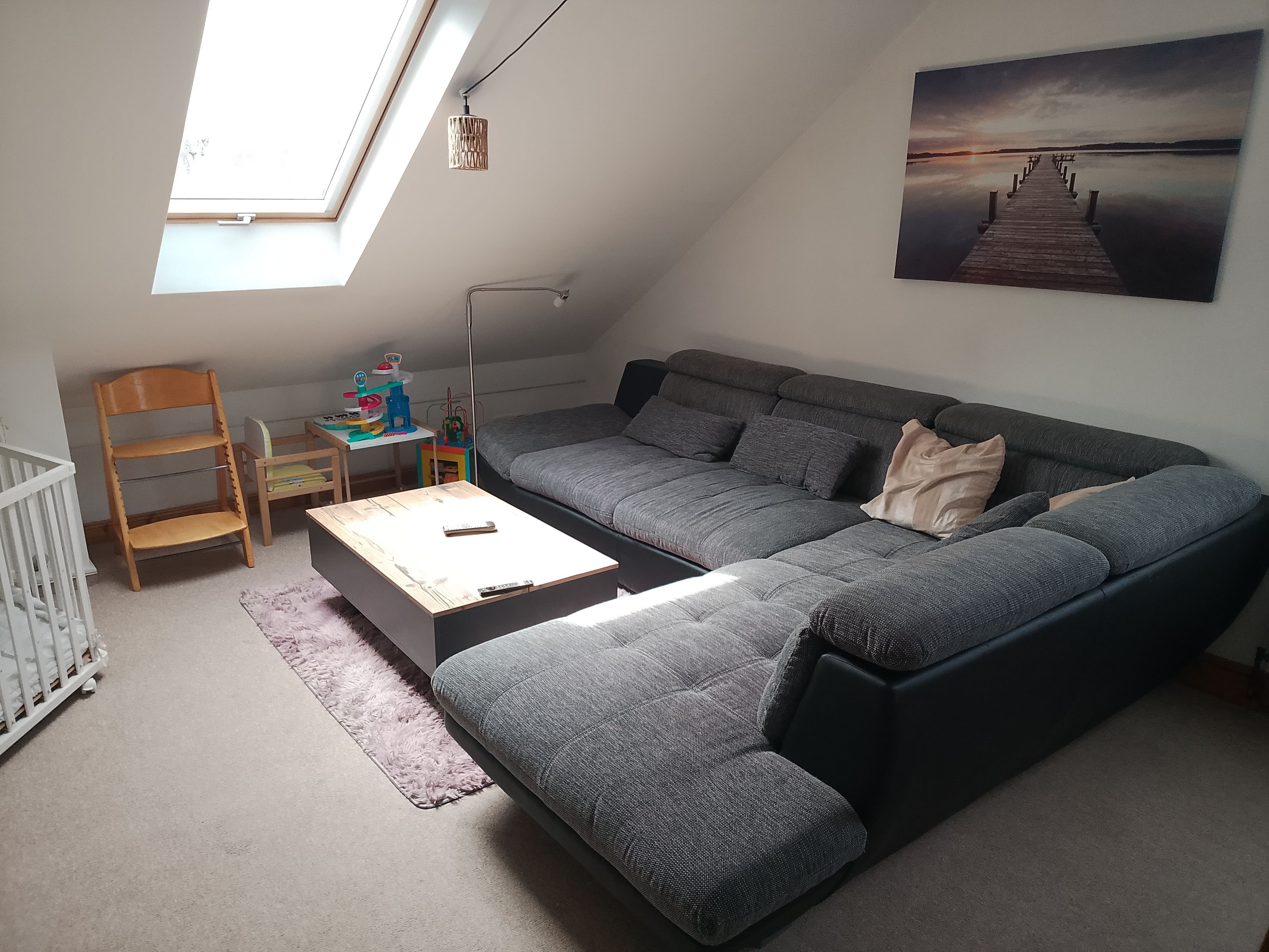 Wir bieten Ihnen eine helle gemütliche Ferienwohnung mit ca 70 qm Wohnfläche im Dachgeschoss, für gehbehinderte mit Treppenlift erreichbar.
