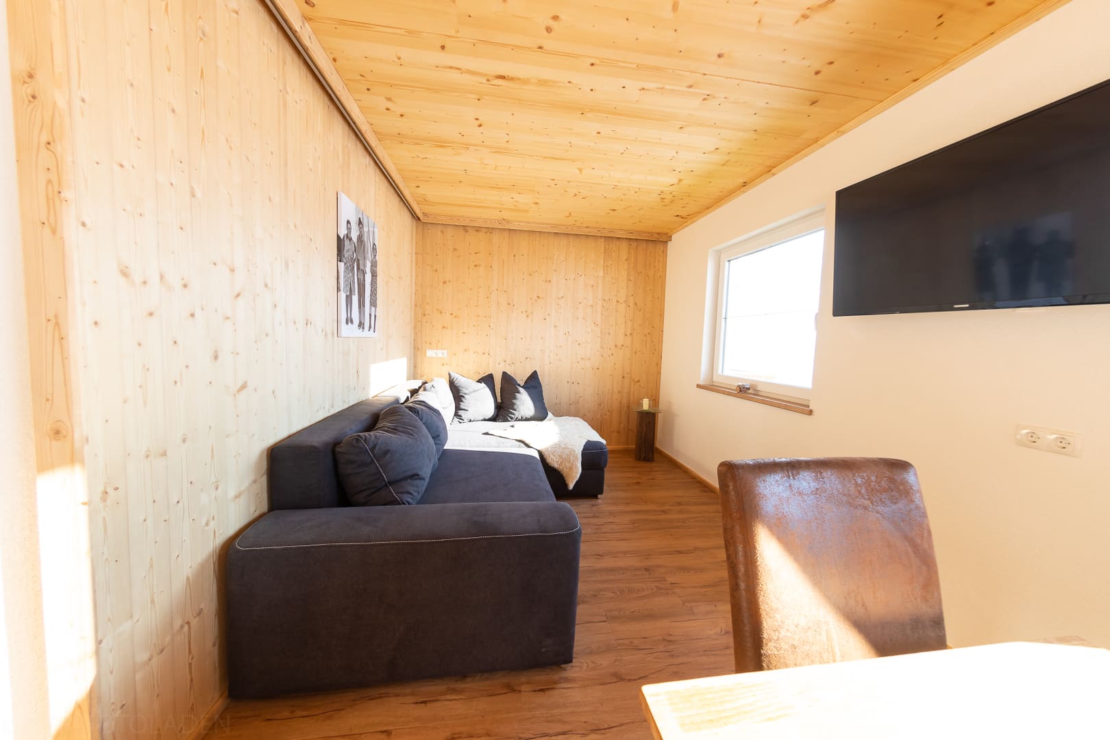 Unsere Ferienwohnung Spieljoch ist für 2-4 Personen. Es erwartet Sie eine rustikal moderne Wohneinheit mit neu eingerichteter und komplett ausgestatteter Wohnküche Die 2 Doppelbetten und eine Ausziehcouch sowie einer Dusche und WC bieten viel Platz zum Entspannen. Erholen Sie sich auf der großzügigen Panoramaterrasse mit freiem Blick auf die Zillertaler Bergwelt.