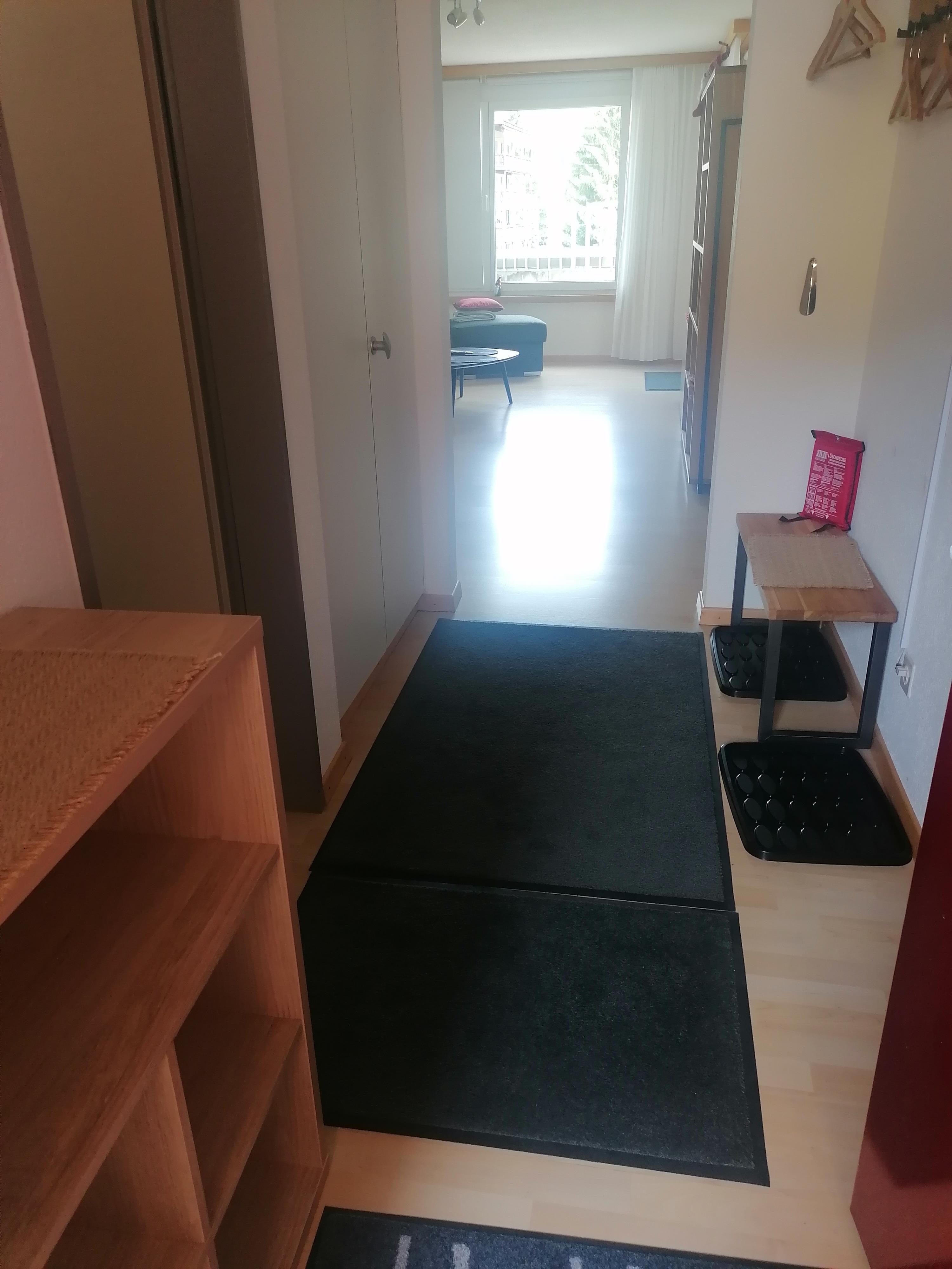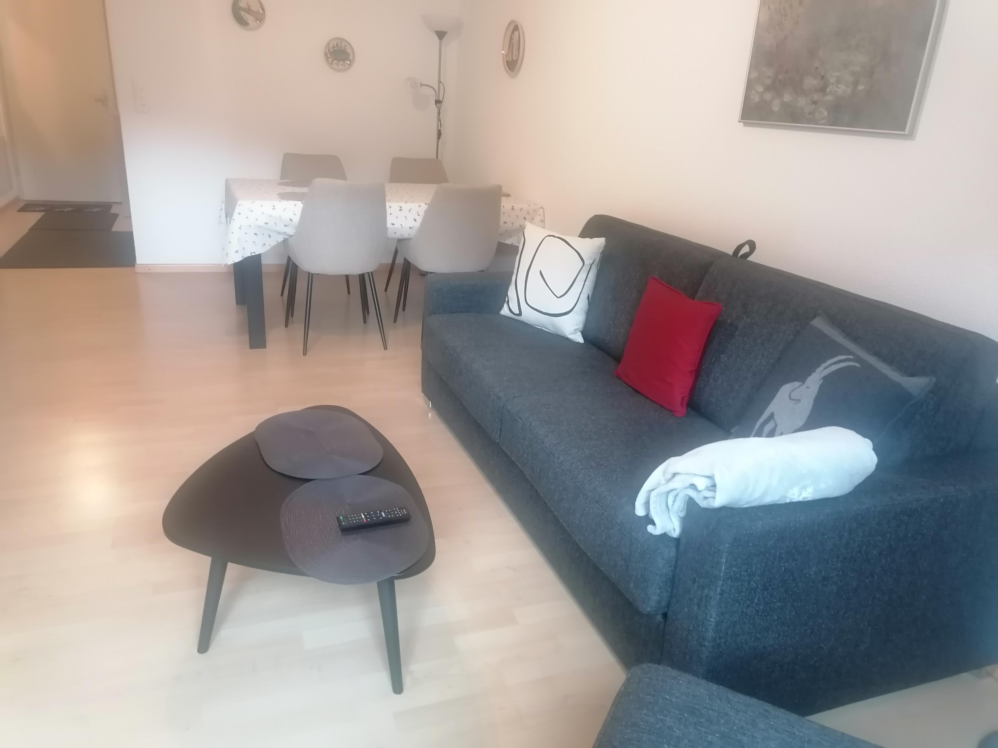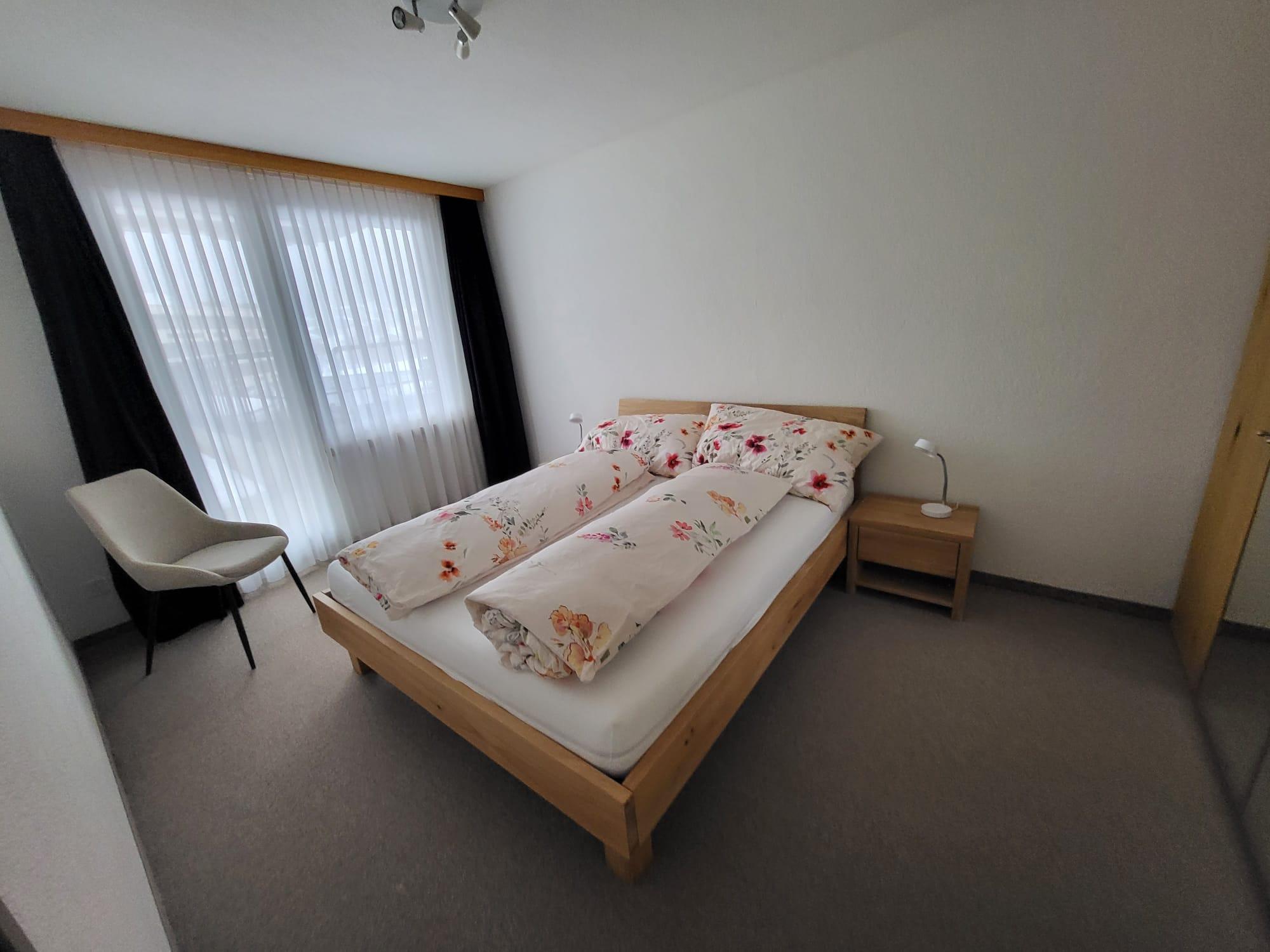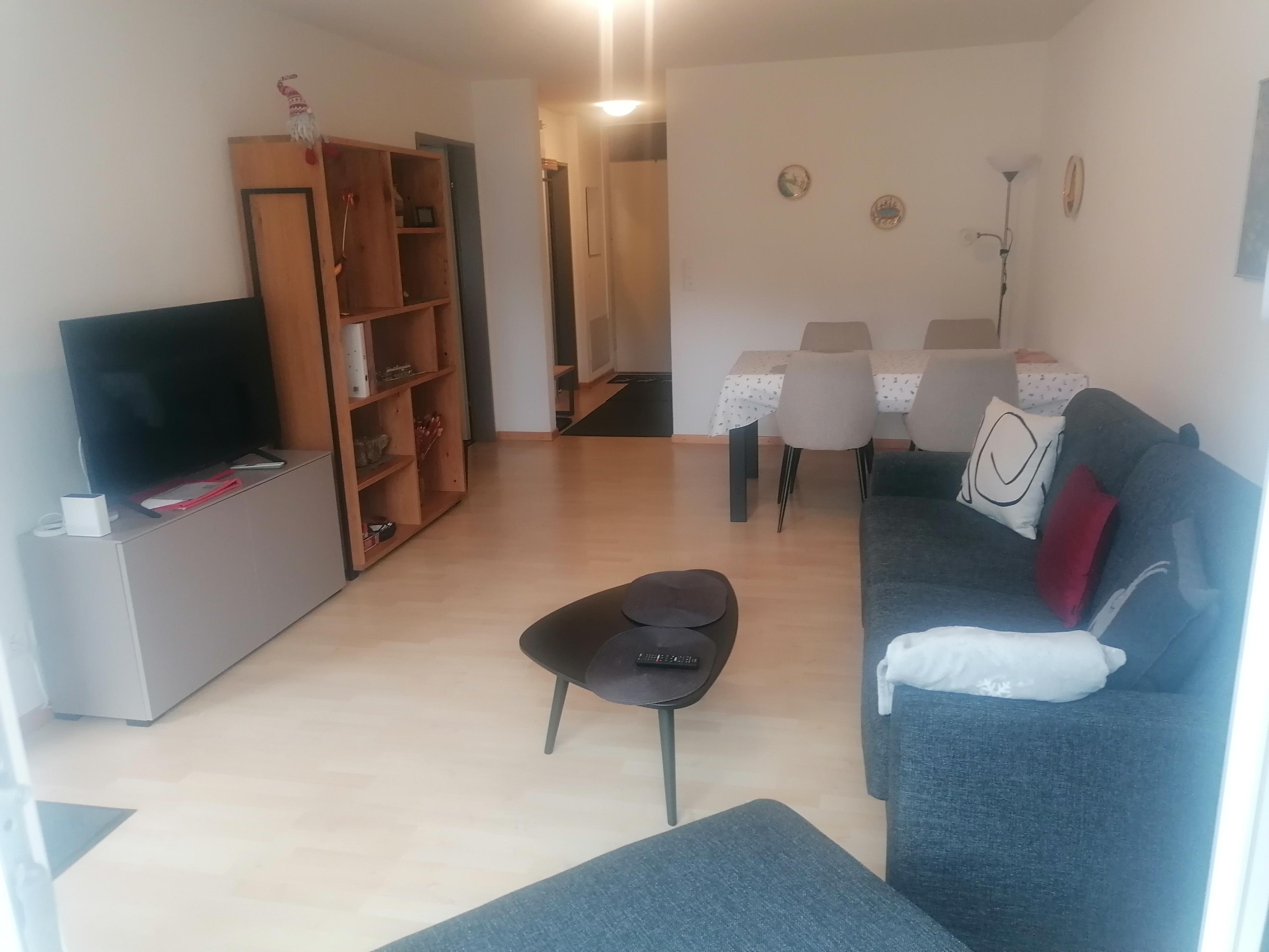 2 Zimmerwohnung (ca. 57m 2) im 1.Stock, Mehrfamilienhaus mit Lift; grosse Terrasse mit Tisch und Stühlen; Richtung Nord-Ost; Autoabstellplatz in Tiefgarage; Mitbenützung des Ski und des Bikeraums; ebenso nach Absprache der Waschmaschine, des Tumblers und des Trocknungsraums; Küche mit 4 Plattenglaskeramikherd, Backofen, Abwaschmaschine, Kühlschrank mit Gefrierfach, Kaffeemaschine; Bad/WC mit Badewanne und Duschvorrichtung; 1 Schlafzimmer mit Doppelbett (2 einzelne Matrazen ) Nachttische, Nachttischlampen, grosser Kleiderschrank; Wohnzimmer mit Essecke, grosser Tisch und 4 Stühlen, Sofa mit Bettfunktion für 2 Personen, Fernseher, WLAN; Bettwäsche, Frotteewäsche, Küchenwäsche, Duvets nordisch; Grundstock Gewürze, Abfallsack, WC Papier, Haushaltrollen, Abwaschmaschinentabs vorhanden; Nichtraucher Wohnung; Haustiere auf Anfrage erlaubt.