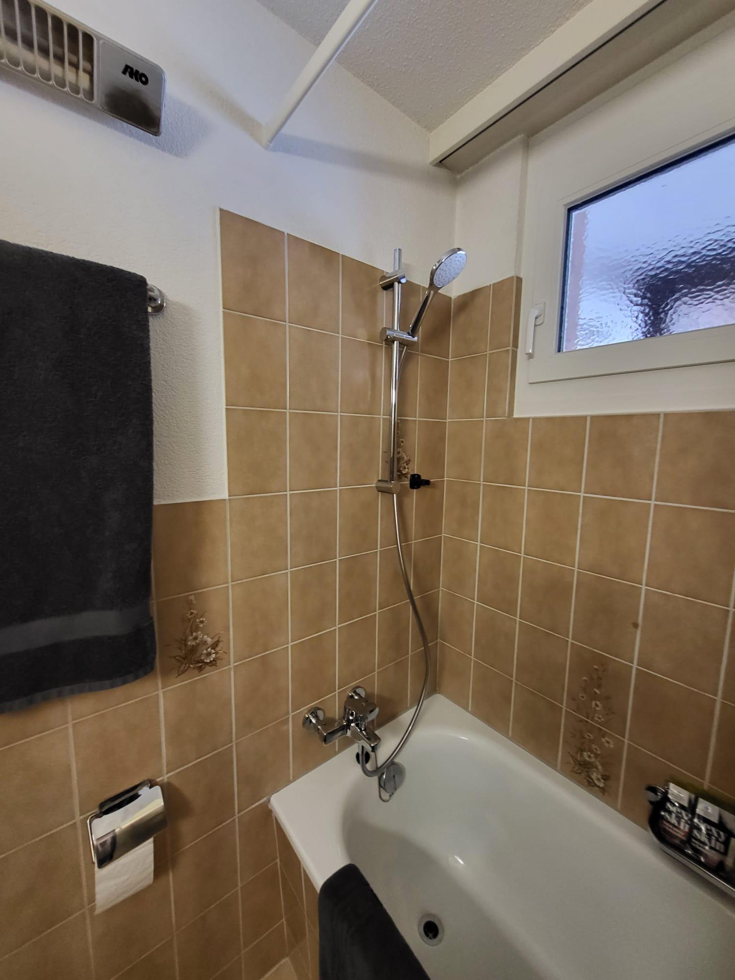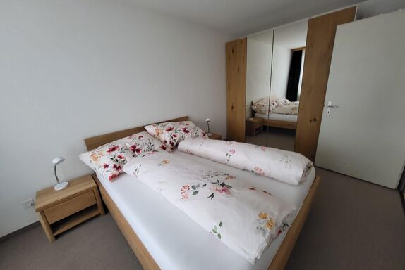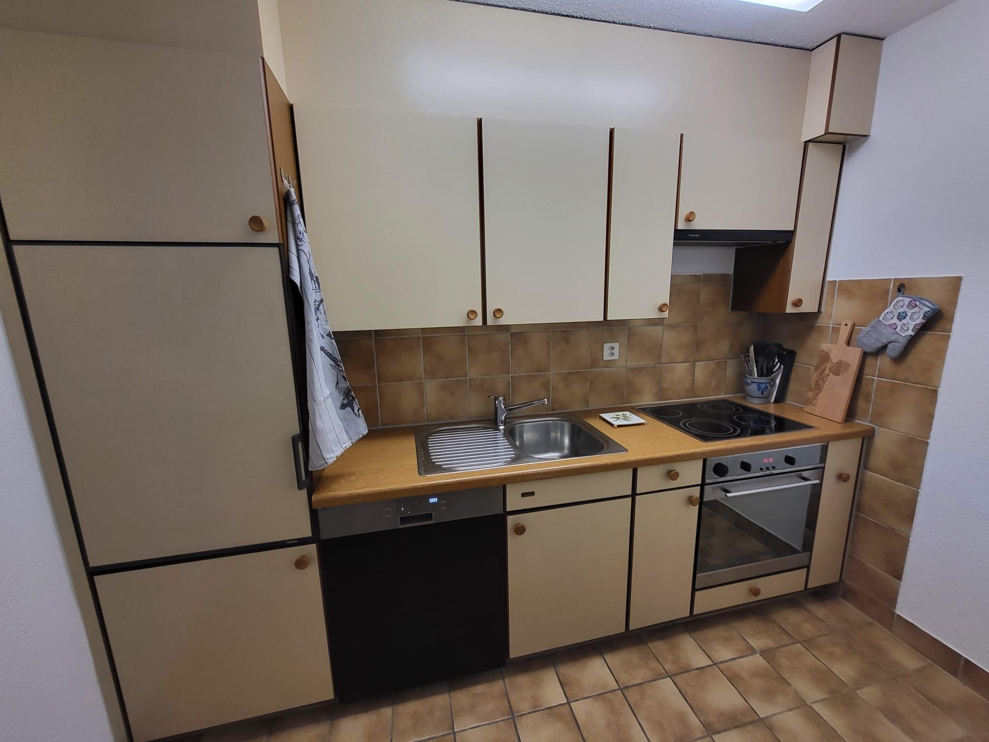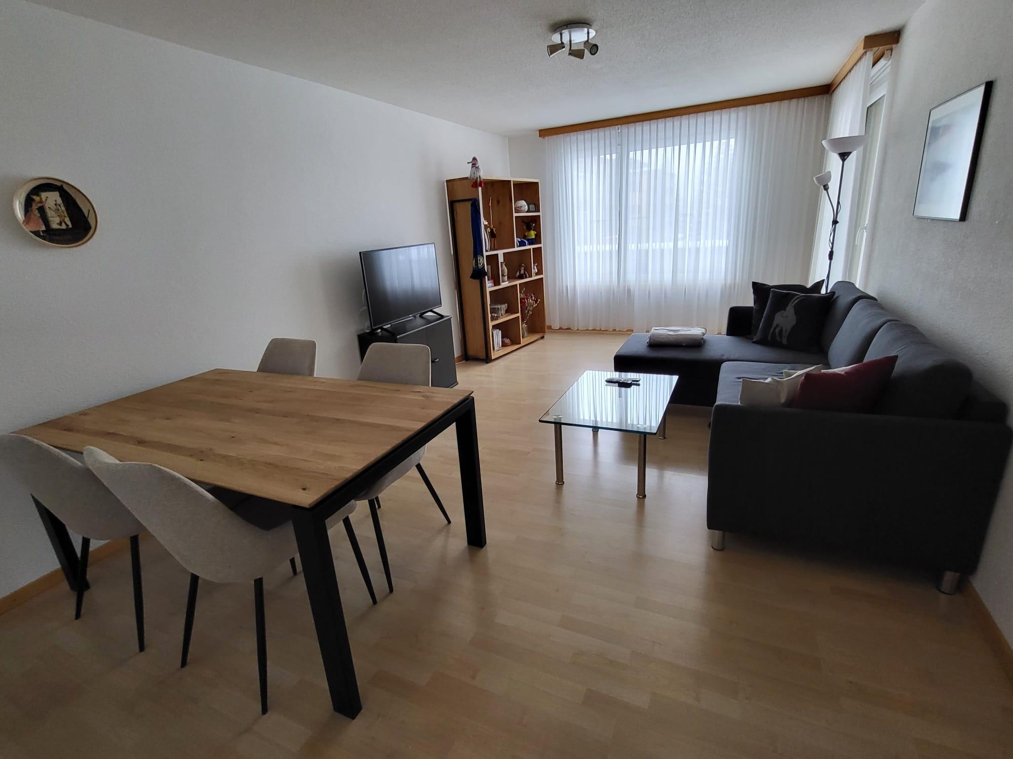 2 Zimmerwohnung (ca. 57m 2) im 1.Stock, Mehrfamilienhaus mit Lift; grosse Terrasse mit Tisch und Stühlen; Richtung Nord-Ost; Autoabstellplatz in Tiefgarage; Mitbenützung des Ski und des Bikeraums; ebenso nach Absprache der Waschmaschine, des Tumblers und des Trocknungsraums; Küche mit 4 Plattenglaskeramikherd, Backofen, Abwaschmaschine, Kühlschrank mit Gefrierfach, Kaffeemaschine; Bad/WC mit Badewanne und Duschvorrichtung; 1 Schlafzimmer mit Doppelbett (2 einzelne Matrazen ) Nachttische, Nachttischlampen, grosser Kleiderschrank; Wohnzimmer mit Essecke, grosser Tisch und 4 Stühlen, Sofa mit Bettfunktion für 2 Personen, Fernseher, WLAN; Bettwäsche, Frotteewäsche, Küchenwäsche, Duvets nordisch; Grundstock Gewürze, Abfallsack, WC Papier, Haushaltrollen, Abwaschmaschinentabs vorhanden; Nichtraucher Wohnung; Haustiere auf Anfrage erlaubt.