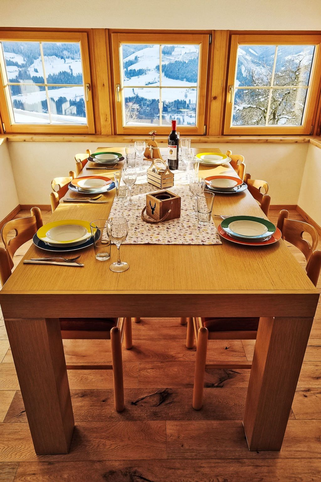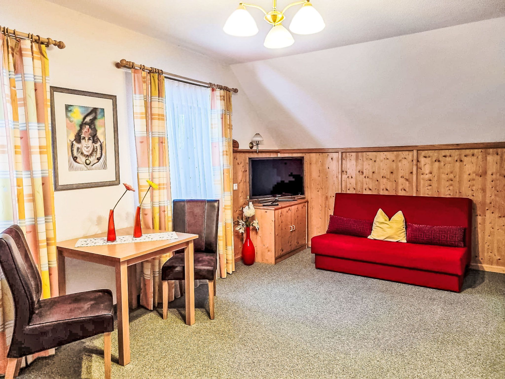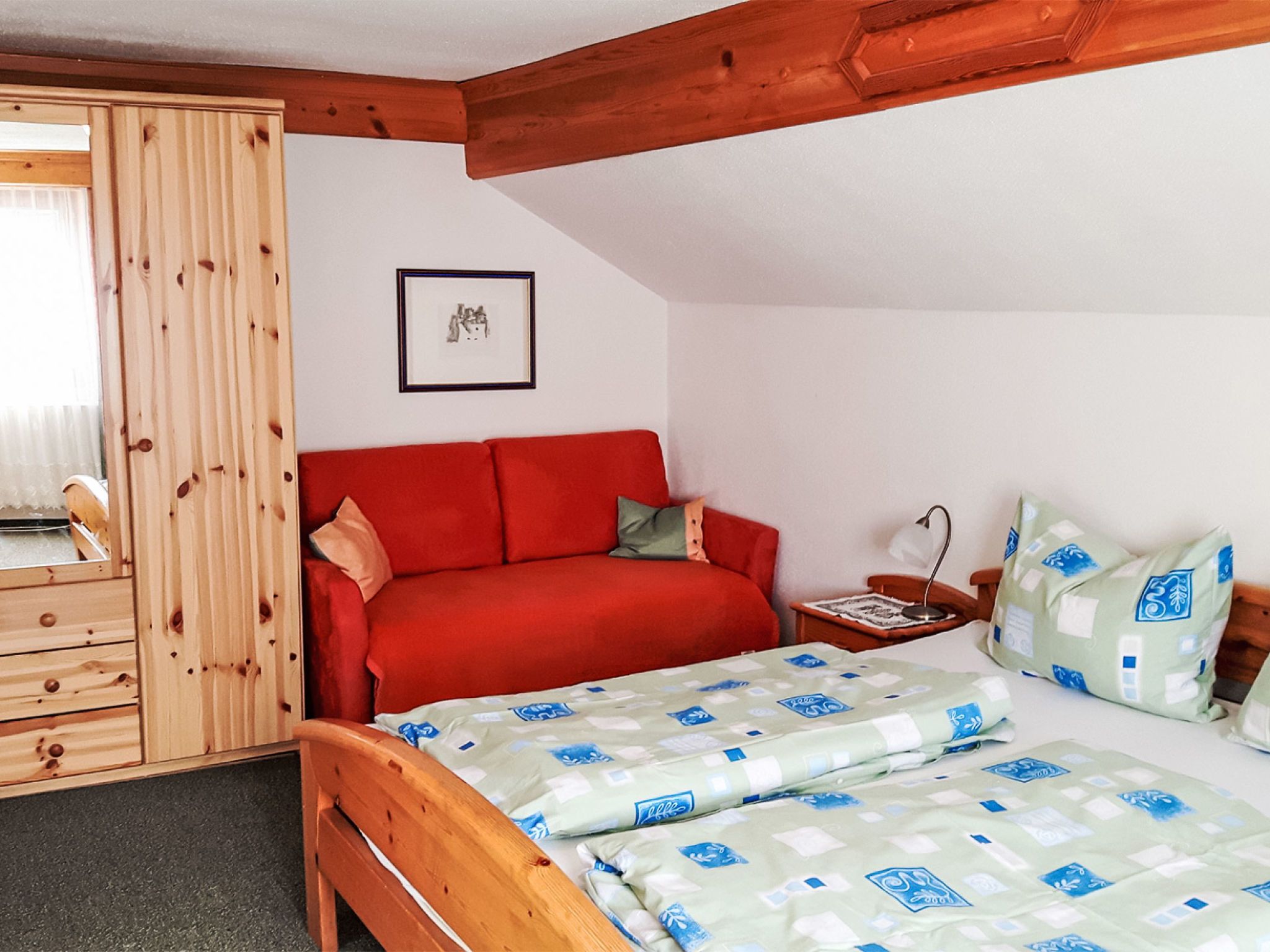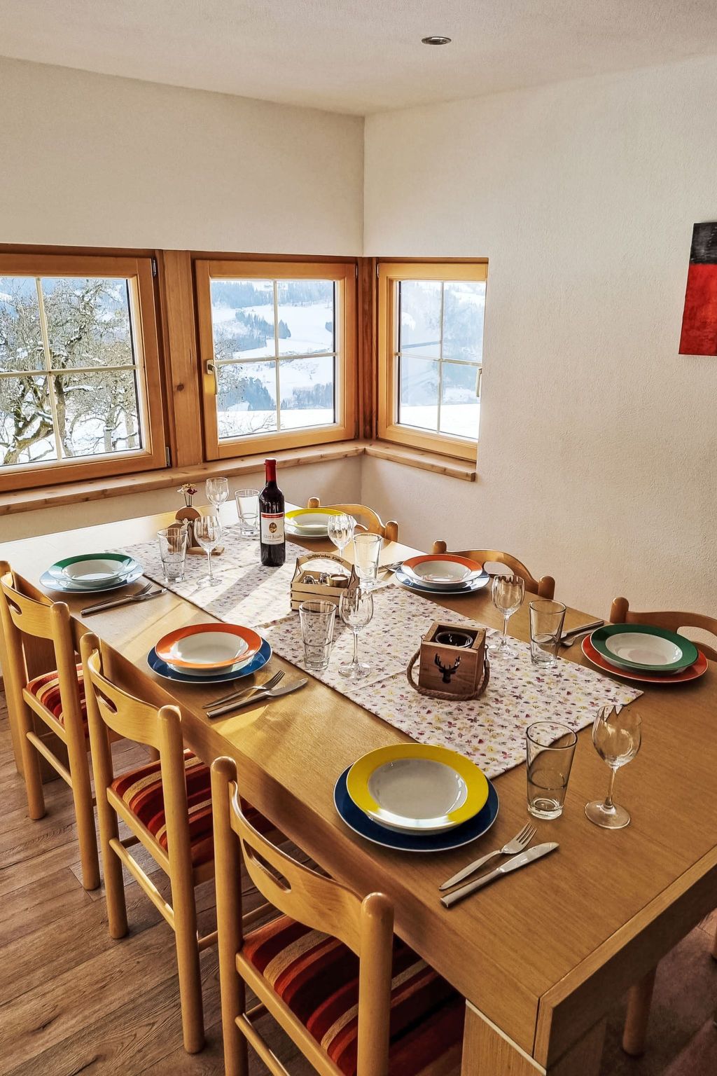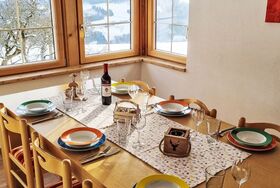 Kulmer Hof, 6-Zimmer-Wohnung 140 m2 auf 2 Stockwerken, im Dachgeschoss. Objekt geeignet für 6 Erwachsene + 3 Kinder. Gemütlich eingerichtet: Esszimmer mit Esstisch. 1 Doppelzimmer mit 1 Diwanbett, Dusche/WC, Sat-TV und Internationale TV-Sender (Flachbildschirm). 1 Kinderzimmer mit 2 Betten. 1 Doppelzimmer mit Dusche/WC, Sat-TV und Internationale TV-Sender (Flachbildschirm). 1 Doppelzimmer mit Dusche/WC, Sat-TV und Internationale TV-Sender (Flachbildschirm). 1 Kinderzimmer mit 1 Bett. Küche im Eingang (Backofen, 4 Induktionskochplatten, Wasserkocher, Mikrowelle, elektrische Kaffeemaschine). Obergeschoss: (Aussentreppe) Eingang. Parkettboden, Teppichboden. Sehr schöne Sicht auf die Berge. Zur Verfügung: Kinderhochstuhl, Babybett, Haartrockner. Internet (WLAN). Bitte beachten: geeignet für Familien. Nichtraucher-Unterkunft. Maximal 1 Haustier/Hund erlaubt. Hinweis: Bis zu einer Gästeanzahl von 6 Personen sind nicht alle Zimmer verfügbar. Bei Belegung mit weniger Personen als der maximalen Personenzahl stehen nicht alle Schlafzimmer zur Verfügung.