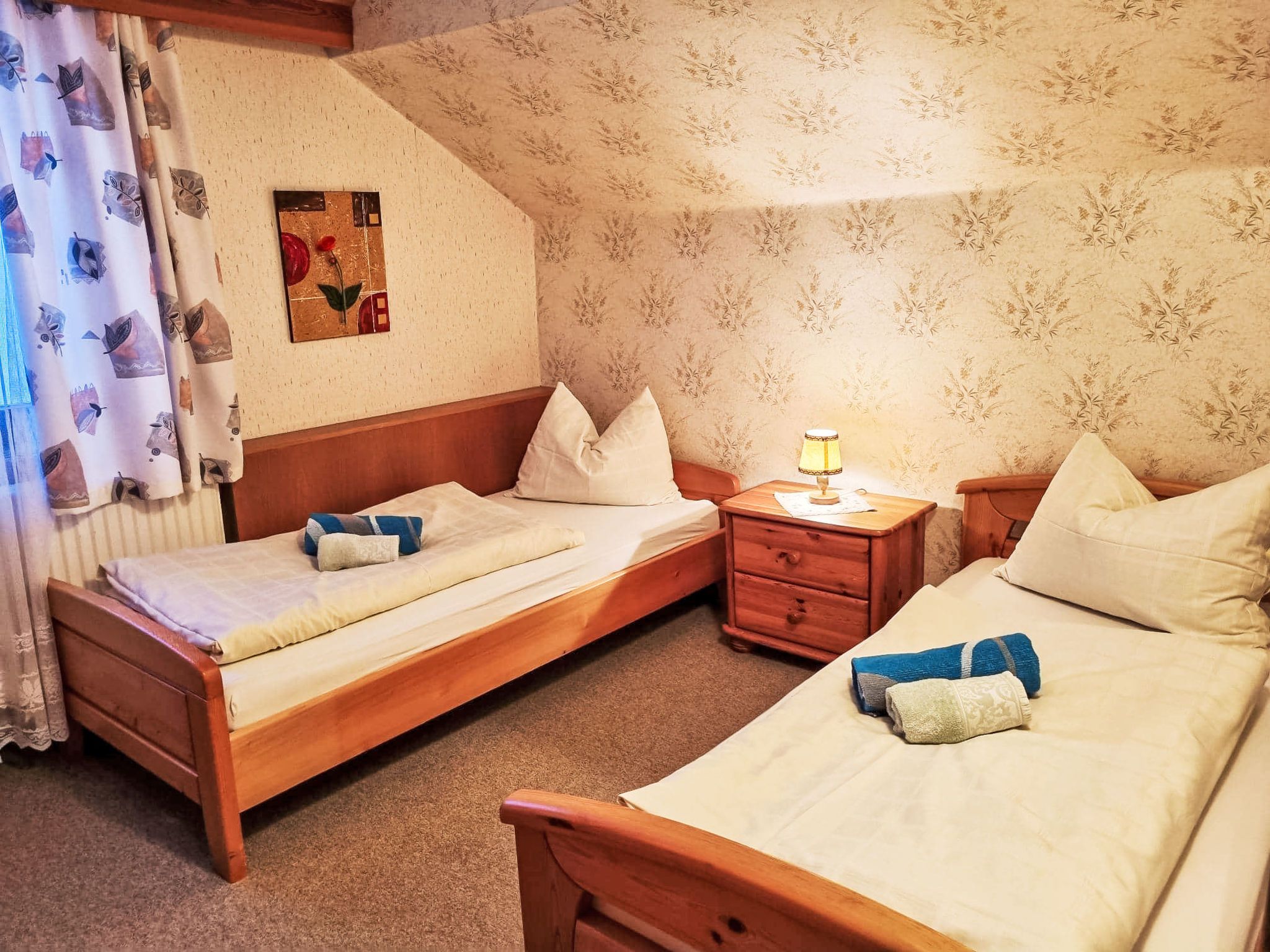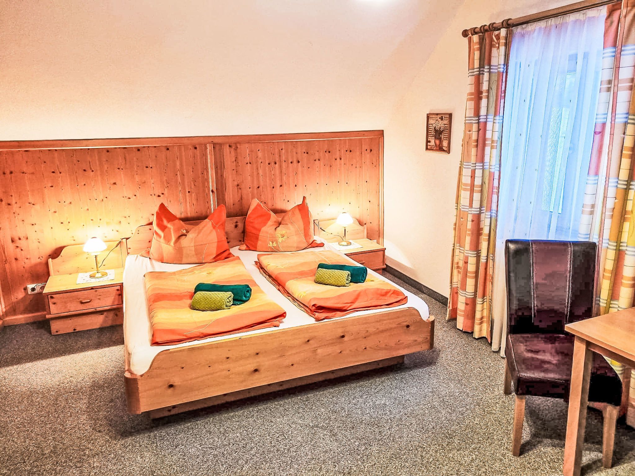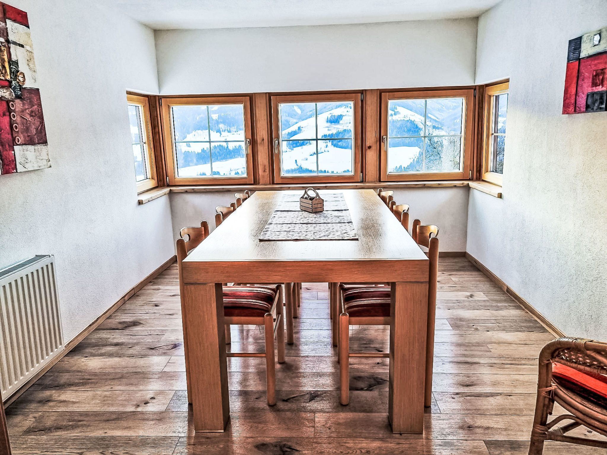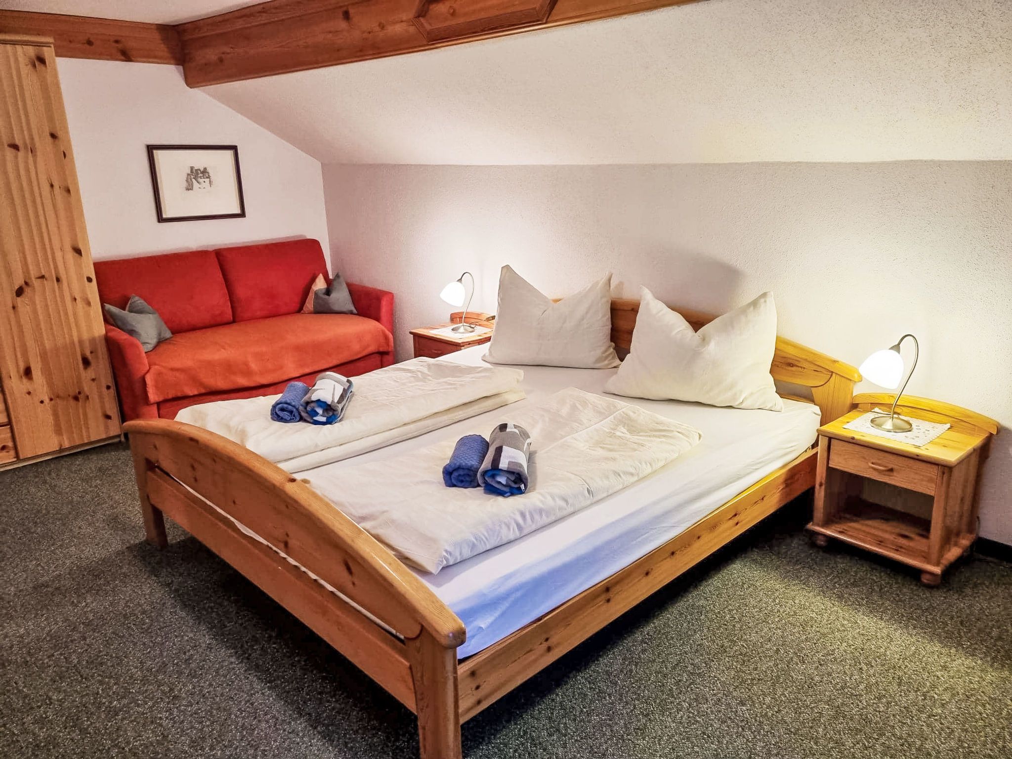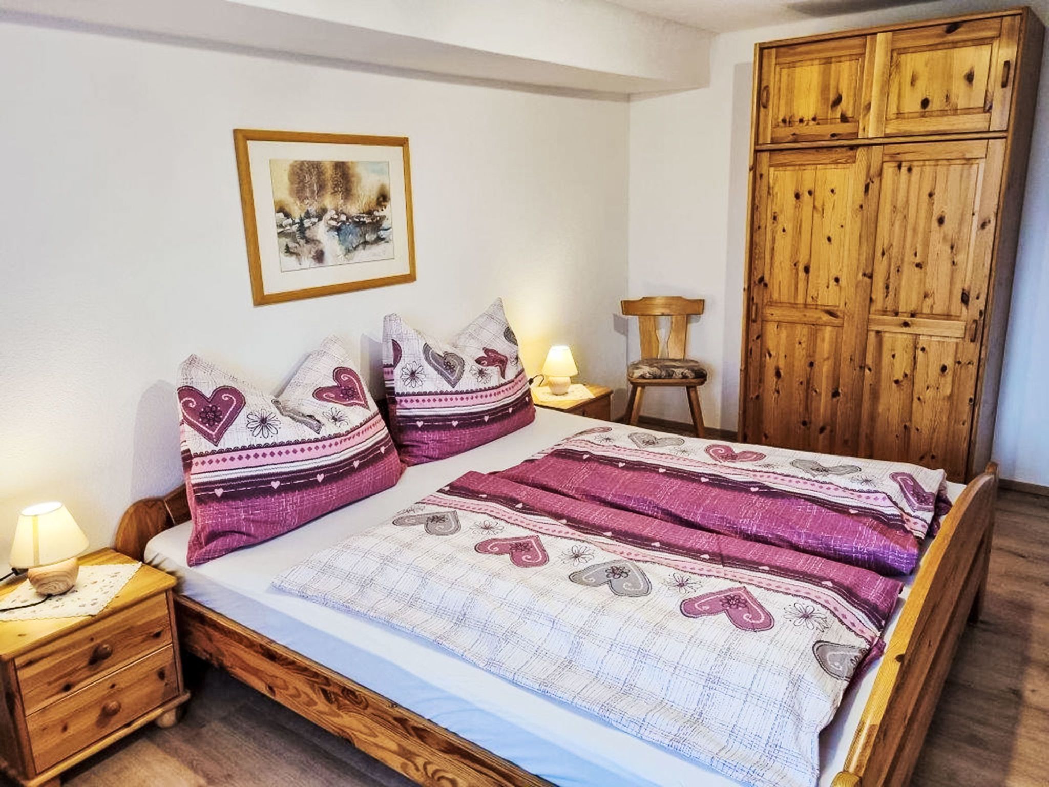 Kulmer Hof, 6-Zimmer-Wohnung 140 m2 auf 2 Stockwerken, im Dachgeschoss. Objekt geeignet für 6 Erwachsene + 3 Kinder. Gemütlich eingerichtet: Esszimmer mit Esstisch. 1 Doppelzimmer mit 1 Diwanbett, Dusche/WC, Sat-TV und Internationale TV-Sender (Flachbildschirm). 1 Kinderzimmer mit 2 Betten. 1 Doppelzimmer mit Dusche/WC, Sat-TV und Internationale TV-Sender (Flachbildschirm). 1 Doppelzimmer mit Dusche/WC, Sat-TV und Internationale TV-Sender (Flachbildschirm). 1 Kinderzimmer mit 1 Bett. Küche im Eingang (Backofen, 4 Induktionskochplatten, Wasserkocher, Mikrowelle, elektrische Kaffeemaschine). Obergeschoss: (Aussentreppe) Eingang. Parkettboden, Teppichboden. Sehr schöne Sicht auf die Berge. Zur Verfügung: Kinderhochstuhl, Babybett, Haartrockner. Internet (WLAN). Bitte beachten: geeignet für Familien. Nichtraucher-Unterkunft. Maximal 1 Haustier/Hund erlaubt. Hinweis: Bis zu einer Gästeanzahl von 6 Personen sind nicht alle Zimmer verfügbar. Bei Belegung mit weniger Personen als der maximalen Personenzahl stehen nicht alle Schlafzimmer zur Verfügung.