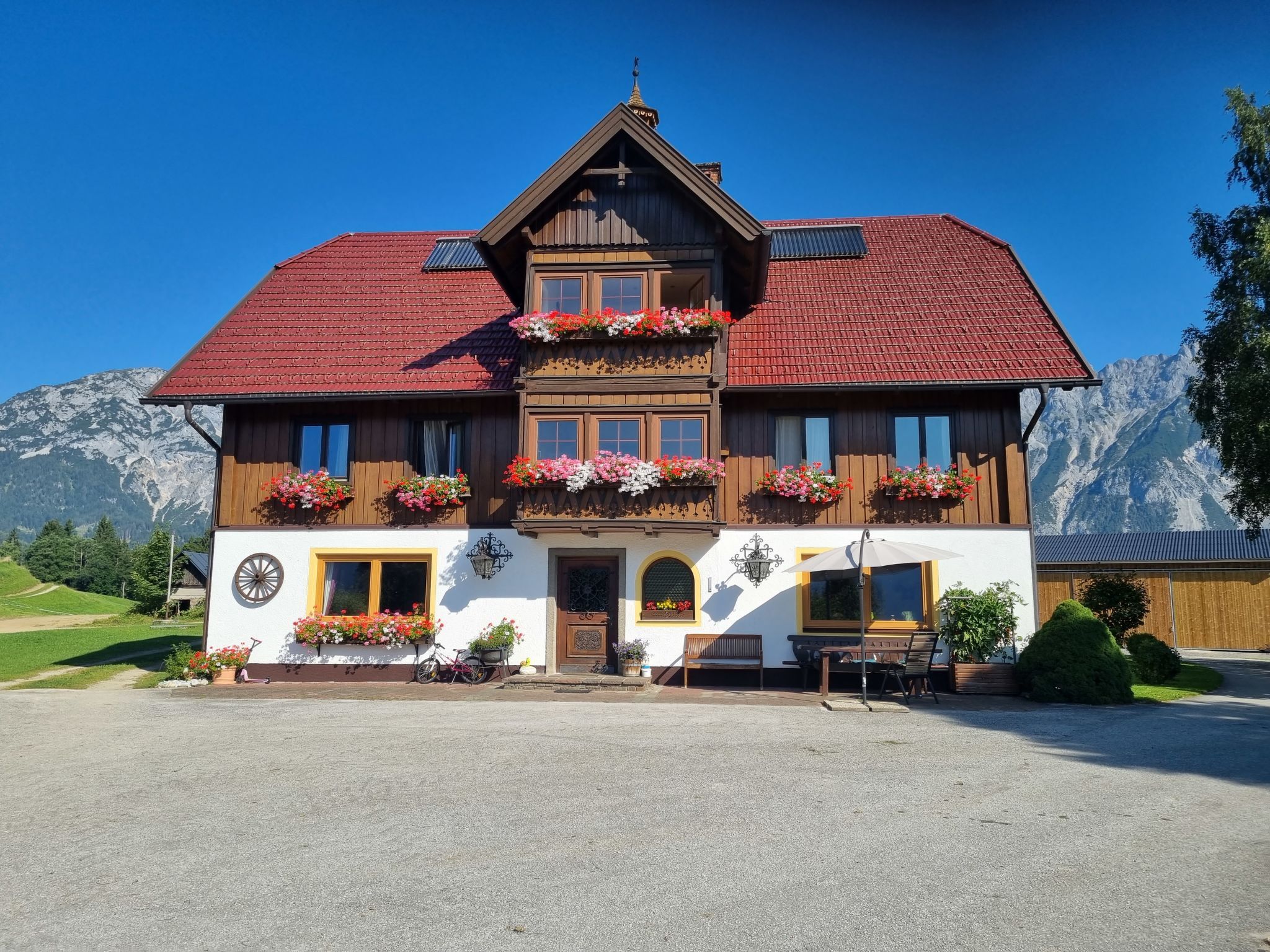 Bauernhof Kulmer Hof, auf 3 Stockwerken. Im Ortsteil Kulm, alleinstehende, ruhige, sonnige Lage, 9 km vom See, 10 km vom Skigebiet. Zur Mitbenutzung: Grundstück 500 m2, wunderschöner Garten zum Entspannen. Gartenmöbel, Feuerstelle, Kinderspielplatz (Schaukel, Sandkasten). Im Hause: Wireless LAN, Einstellraum für Fahrräder, Skiraum, Zentralheizung, Skischuhtrockner. Brötchenservice. 3 km lange Zufahrt bis zum Haus. Im Winter 4x4 empfohlen. Parkplatz beim Haus. Supermarkt 4 km, Einkaufszentrum 5 km, Restaurant 3 km, Bäckerei 3.5 km, Café 3.5 km, Bushaltestelle Pruggern Ort 5.5 km, Thermalbad Gröbming 4 km, Badesee Aicher Badesee 9 km. Luftseilbahn 10 km, Skipisten 10 km, Skiverleih 4 km, Skibushaltestelle 3.5 km, Skischule 10 km, Kinderskischule 10 km, Schlittelbahn 12 km. Bekannte Skigebiete sind gut erreichbar: Galsterbergbahn 10 km, Hauser Kaibling 12 km, Schladming Planaibahn 19 km. Bekannte Seen in der Umgebung sind gut erreichbar: Steirischer Bodensee 16 km. Der Besitzer akzeptiert keine Jugendgruppen. Auf dem Grundstück Tierhaltung. Besitzer wohnt in separatem Hausteil.