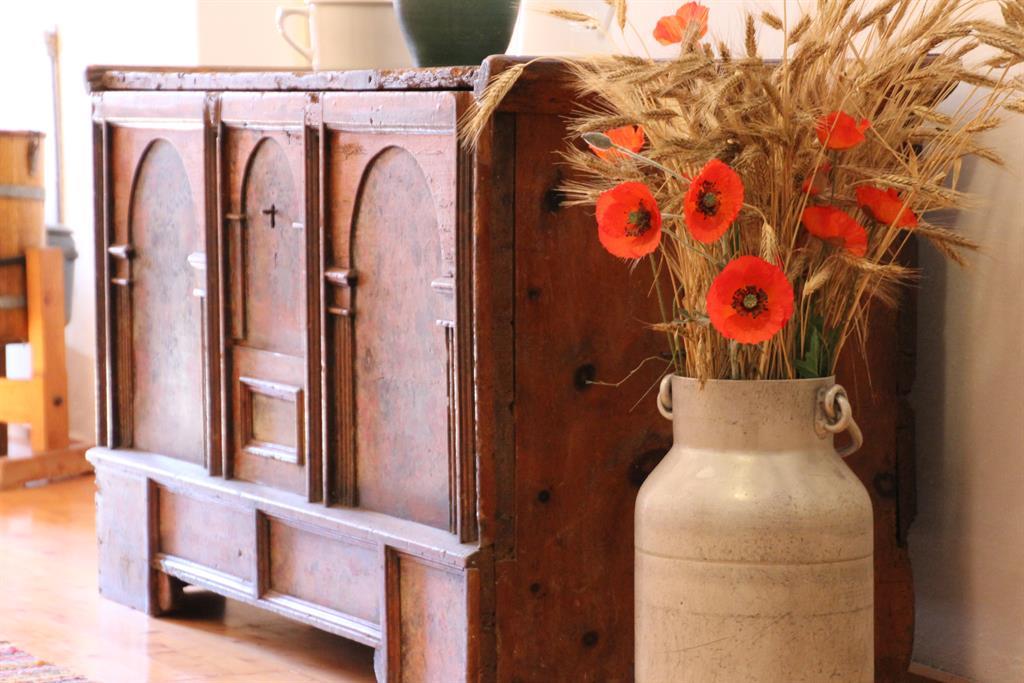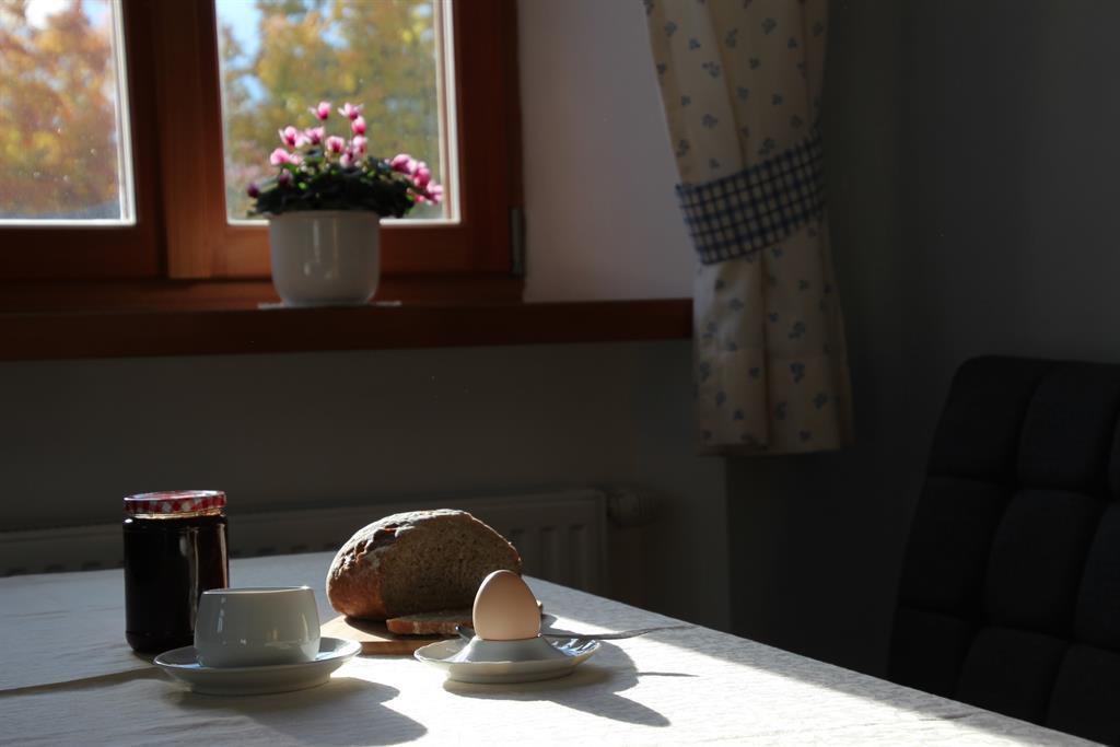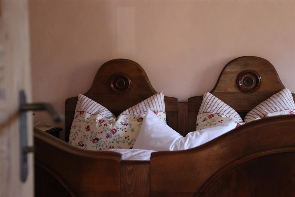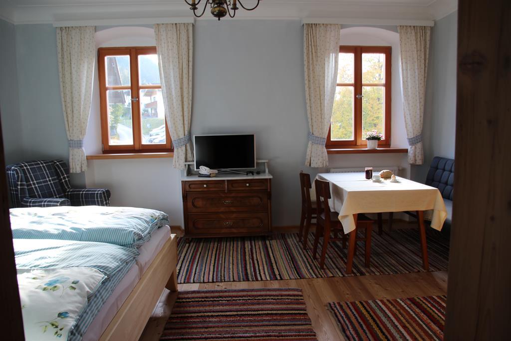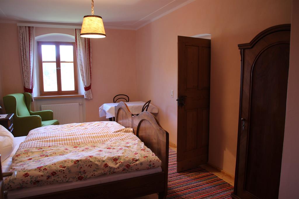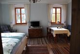 Der Hof wurde liebevoll restauriert und es wurde so gut wie möglich das Alte bewahrt. Die Ferienwohnung ist im 1.Stock des Hauses und besteht aus einem Wohn-Schlafzimmer mit Doppelbett und Essbereich, ein zweites Schlafzimmer mit Doppelbett, eine kleine feine Küche und ein Badezimmer mit WC.