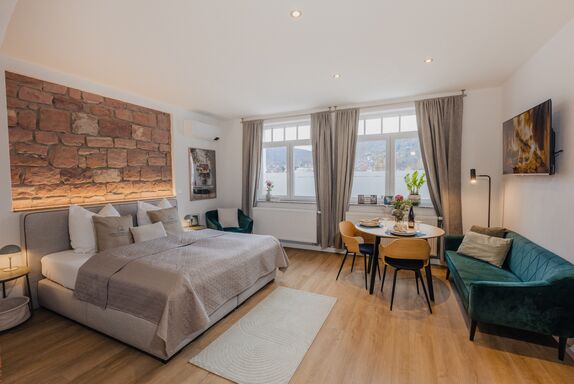 Hier trifft ein moderner Einrichtungsstil auf historischen Sandstein und bietet Dir den perfekten Ort für Erholung und Erleben.