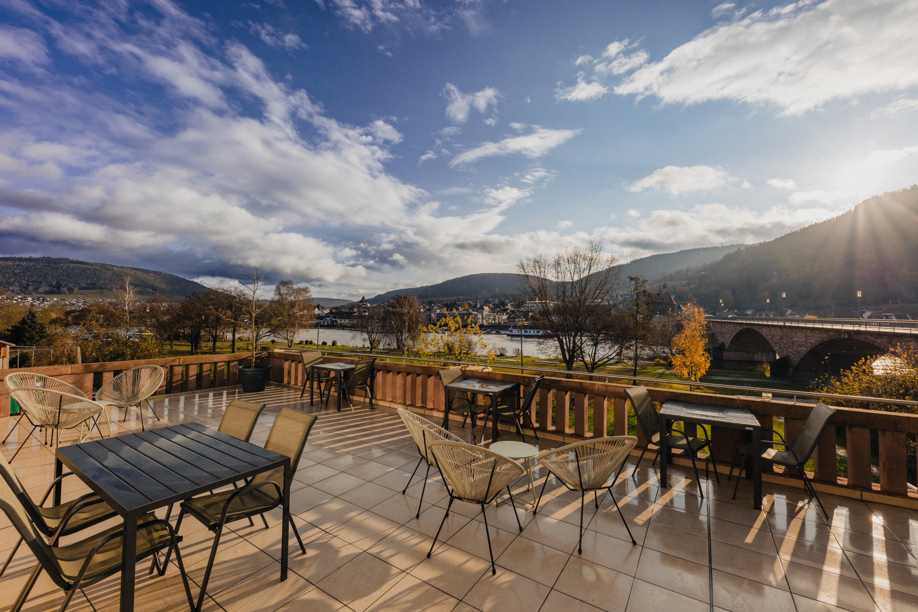 Von der großen gemeinsam genutzten Terrasse genießt Du den traumhaften Blick auf die Altstadt von Miltenberg und auf den Main mit seinen passierenden Schiffen. Einfach mal die Seele baumeln lassen und bei einem guten Glas Wein den Tag genießen.