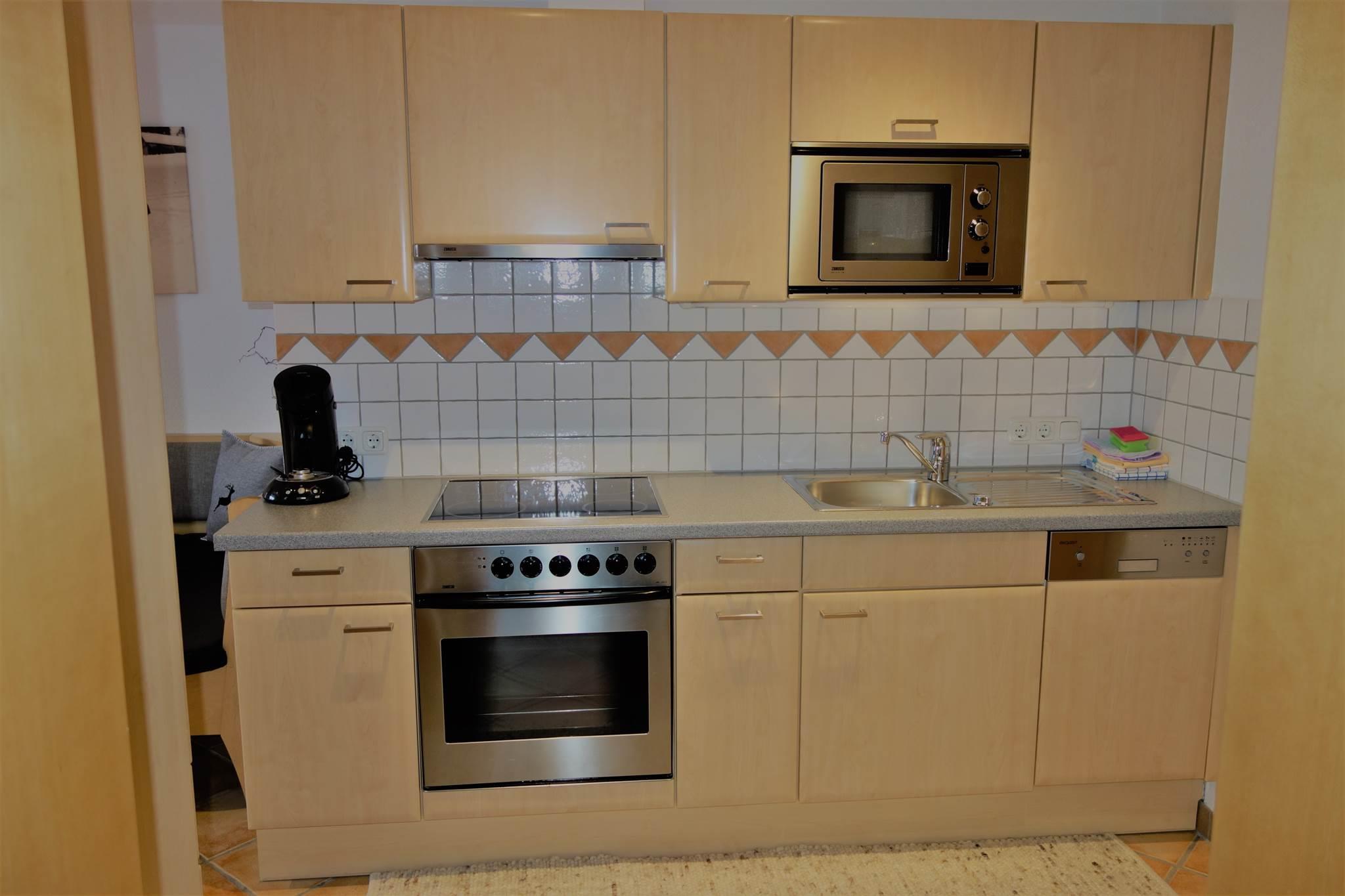 Moderne Wohnküche, 1 Doppelzimmer mit Safe, 1 Dreibettzimmer, Dusche/WC, großer Balkon mit Sitzgelegenheit, 1. Etage
