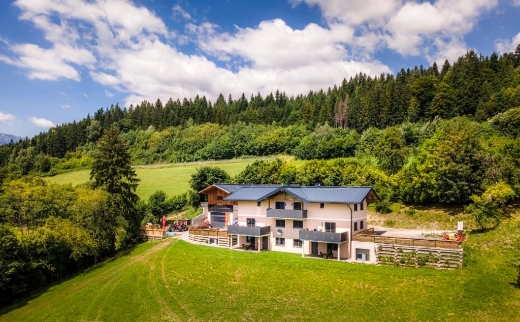 Nur 10 Minuten von der Autobahnabfahrt Werfen entfernt liegt unser Bauernhof – gut erreichbar und trotzdem ruhig, denn wir befinden uns unterhalb der Straße, wo du nichts vom Verkehr hörst. Stattdessen genießt du bei uns eine herrliche Aussicht auf den Hochkönig und das Gründeck, umgeben von Natur und Weitblick.