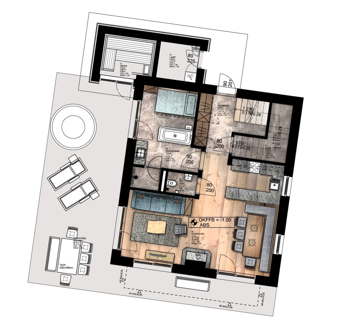 • Balkon mit Sitzgarnitur
