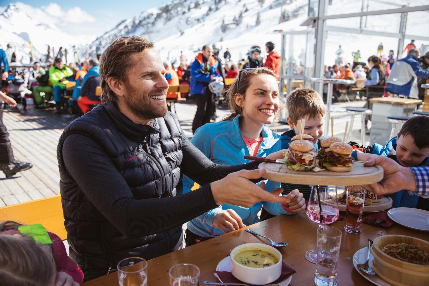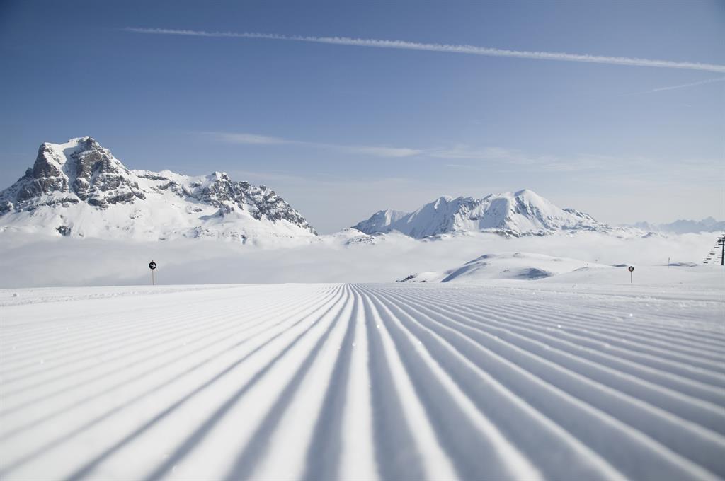 Schräg gegenüber befindet sich die Skibushaltestelle, von wo aus Sie bequem in 5 Minuten das Skigebiet Warth-Schröcken erreichen. Die Skibusse fahren im 15-Minuten Takt. Der Einstieg ins Skigebiet Ski Arlberg ist beim Salober. Dort befindet sich an der Talstation auch die Skischule mit der PAULI SKIARENA, der Sportshop mit Skiverleih sowie Restaurants mit großen Sonnenterrassen