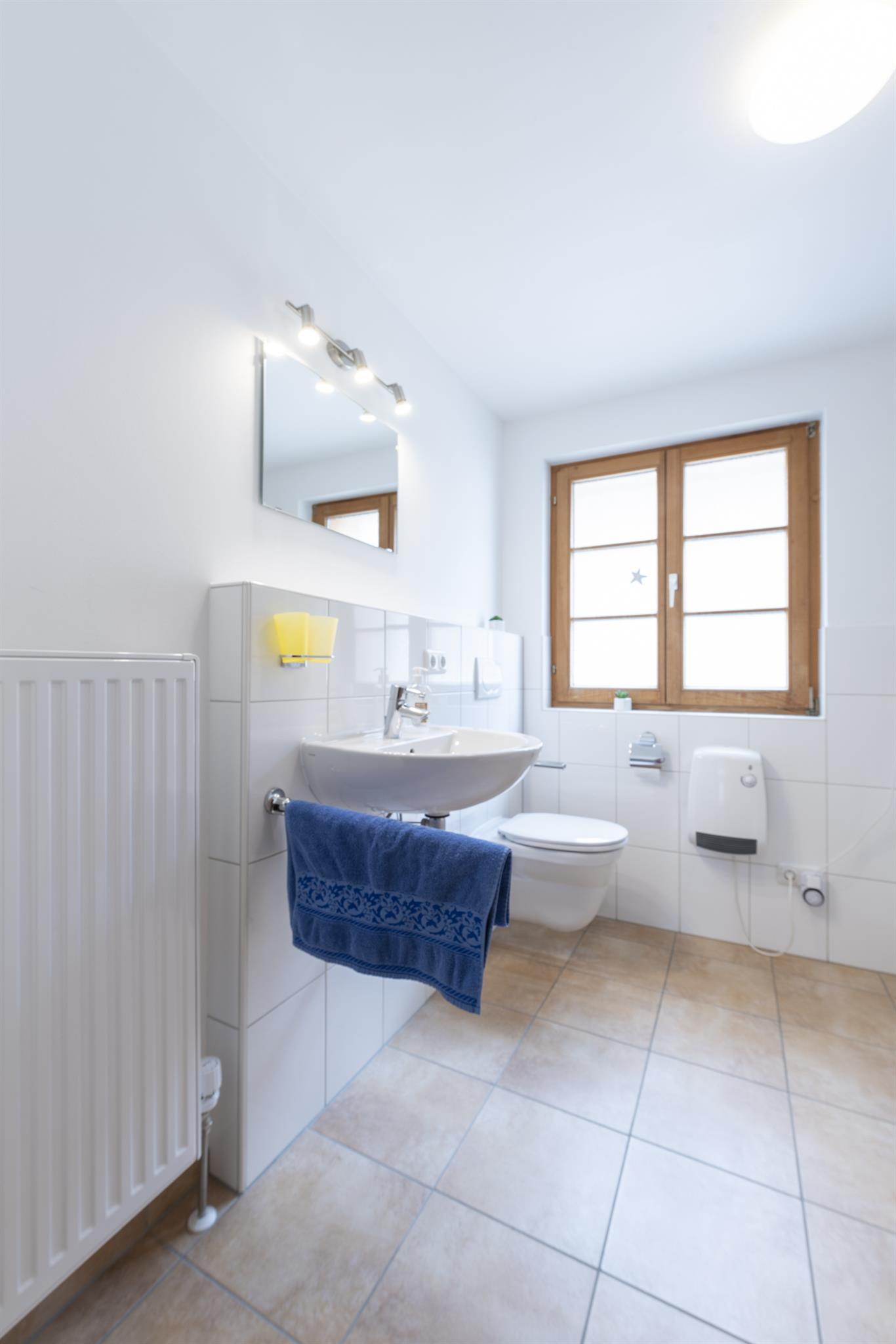 1 Bad mit Dusche und WC, 1 Bad mit Badewanne und WC sowie noch 1 Separates WC zur Verfügung.