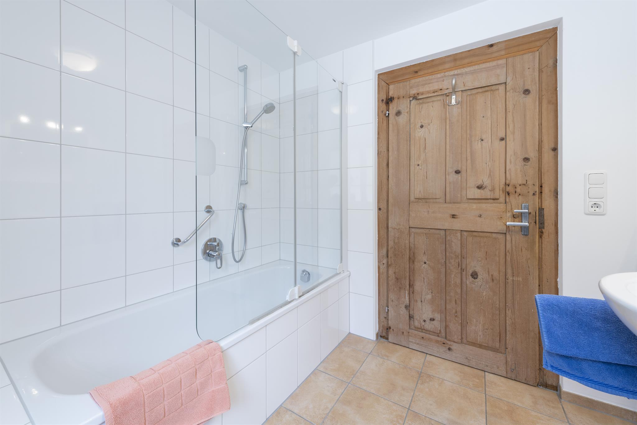 • 1 geräumiges Badezimmer mit Badewanne und WC