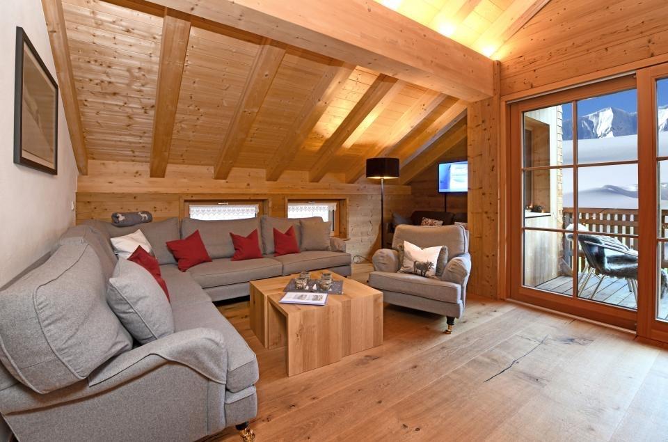 121 m² erstklassiger Wohnkomfort für 6 bis 10 Personen in der obersten Etage. Das mit viel Liebe zum Detail gestaltete Appartement mit „Hüttengefühl“ hat Holzböden und -wände aus massiver Eiche.