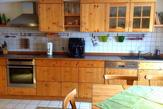 voll ausgestattete Küche mit Abstellraum, gemütliche Wohnstube
