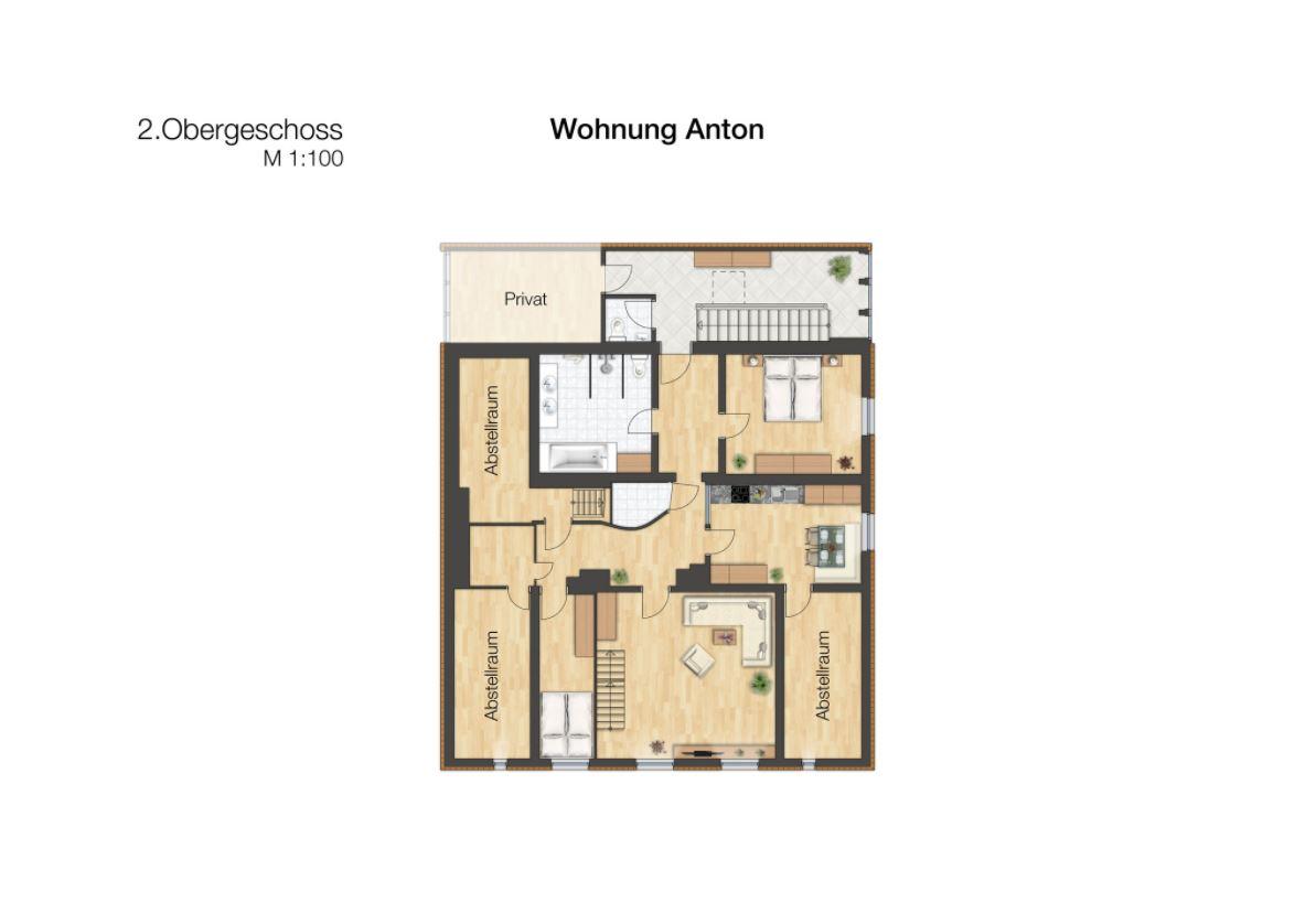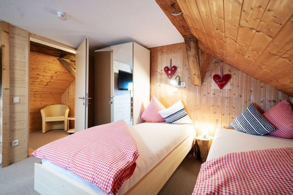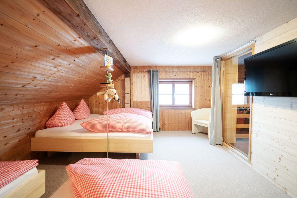 Die doppelgeschossige Wohnung „Anton“ verfügt über 8 Betten mit der Beistellmöglichkeit für Kinderbetten.