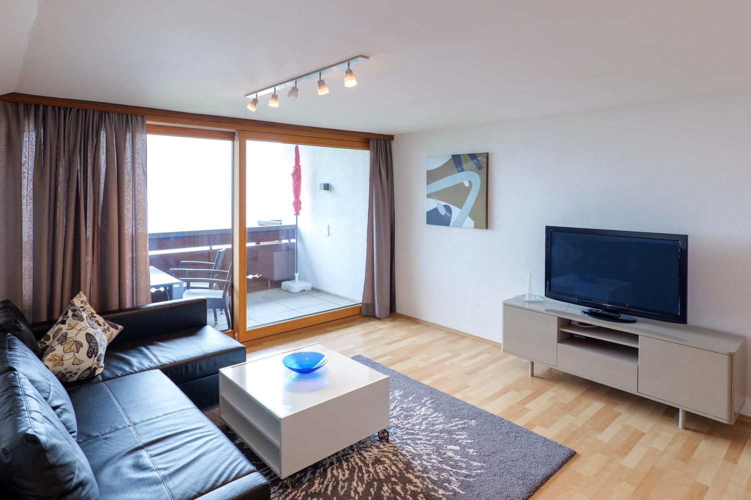 Fast alle Wohnungen haben einen Balkon in sonniger Lage mit Ausblick auf das Bergpanorama.