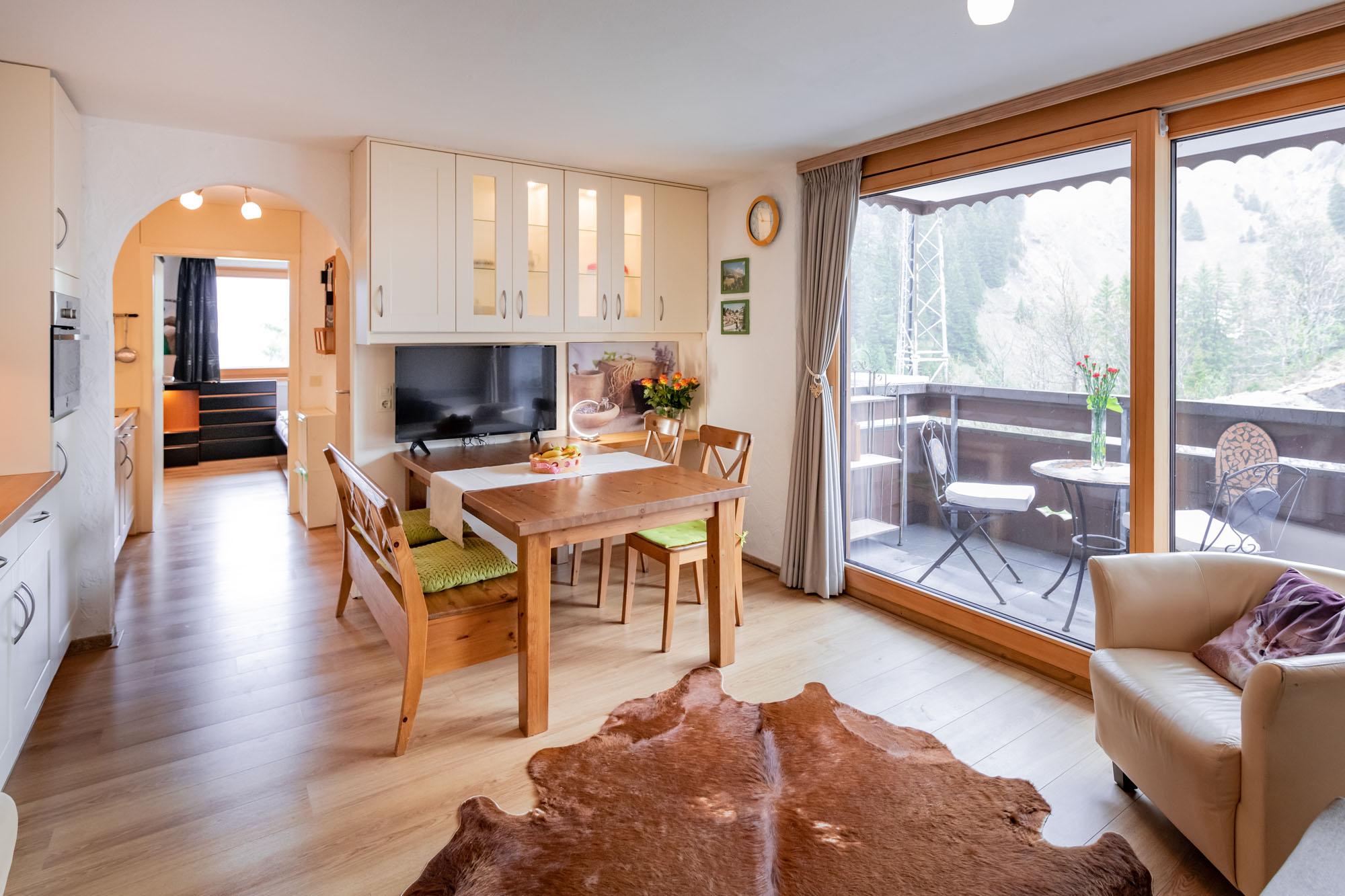 Fast alle Wohnungen haben einen Balkon in sonniger Lage mit Ausblick auf das Bergpanorama.