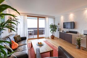 Fast alle Wohnungen haben einen Balkon in sonniger Lage mit Ausblick auf das Bergpanorama.