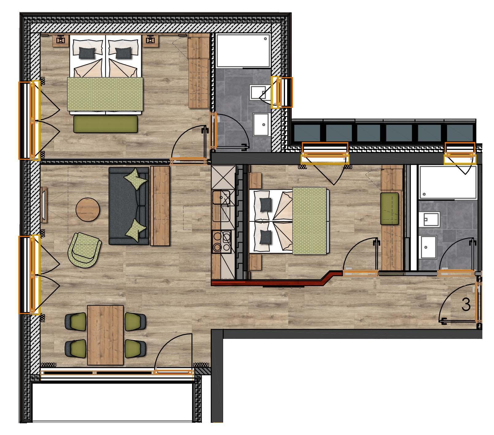 Helles Appartement mit 66 m² im 1. Stock für 2-6 Personen