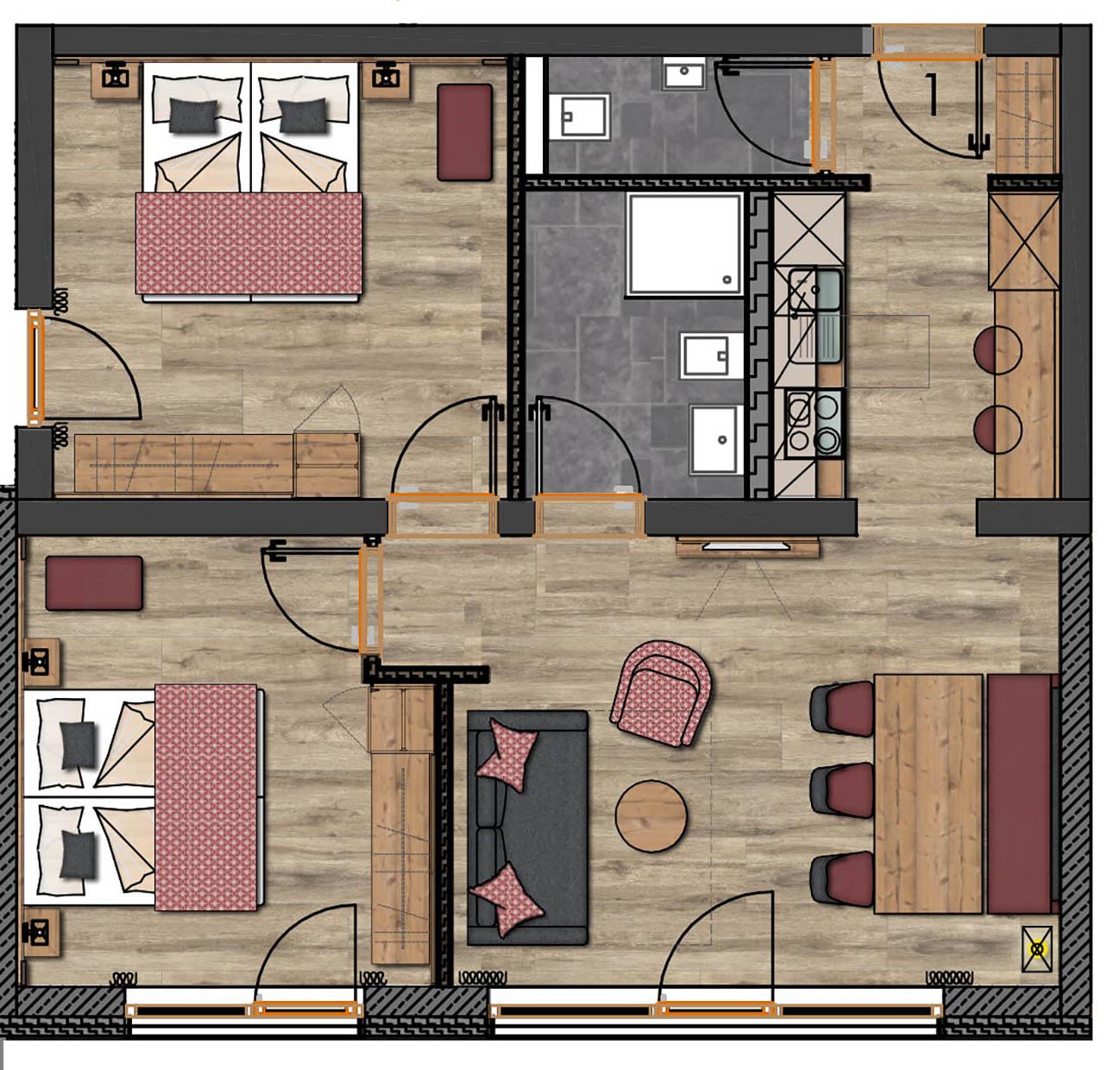 Helles Appartement mit 63 m² im 1. Stock für 2-6 Personen