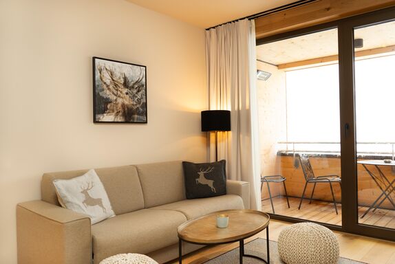 Auf 55 m 2 verfügt das Apartment über kostenloses WLAN und zwei Smart-TV, einen im Wohnbereich und einen im Schlafzimmer. Die Küche ist mit Backofen, Induktions-Kochfeld, Geschirr, Koch-Utensilien, Kaffeemaschine, Wasserkocher und Toaster voll ausgestattet. Die Suite hat Zugang zu einem überdachten Balkon mit Heizung. Das Schlafzimmer ist über ein Schrankzimmer mit dem Badezimmer mit Badewanne und Toilette verbunden. Im Schrank findet sich ein Schranktresor. Ihr Auto stellen sie sicher in der dazugehörigen Tiefgarage ab, wo auch Ladestationen für E-Autos zur Verfügung stehen. Im Resort befindet sich ein Lift, sowie eine Waschküche mit Waschmaschine und Trockner. Kulinarisch umsorgt werden unsere Gäste mit unserem Frühstücksangebot, Brötchen- und Kühlschrankservice, sowie über den Automatenshop, der regelmäßig mit frischen Speisen unseres Haubenkochs A. Shala befüllt wird.