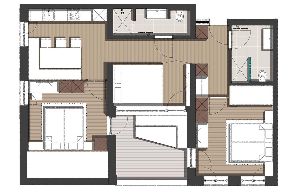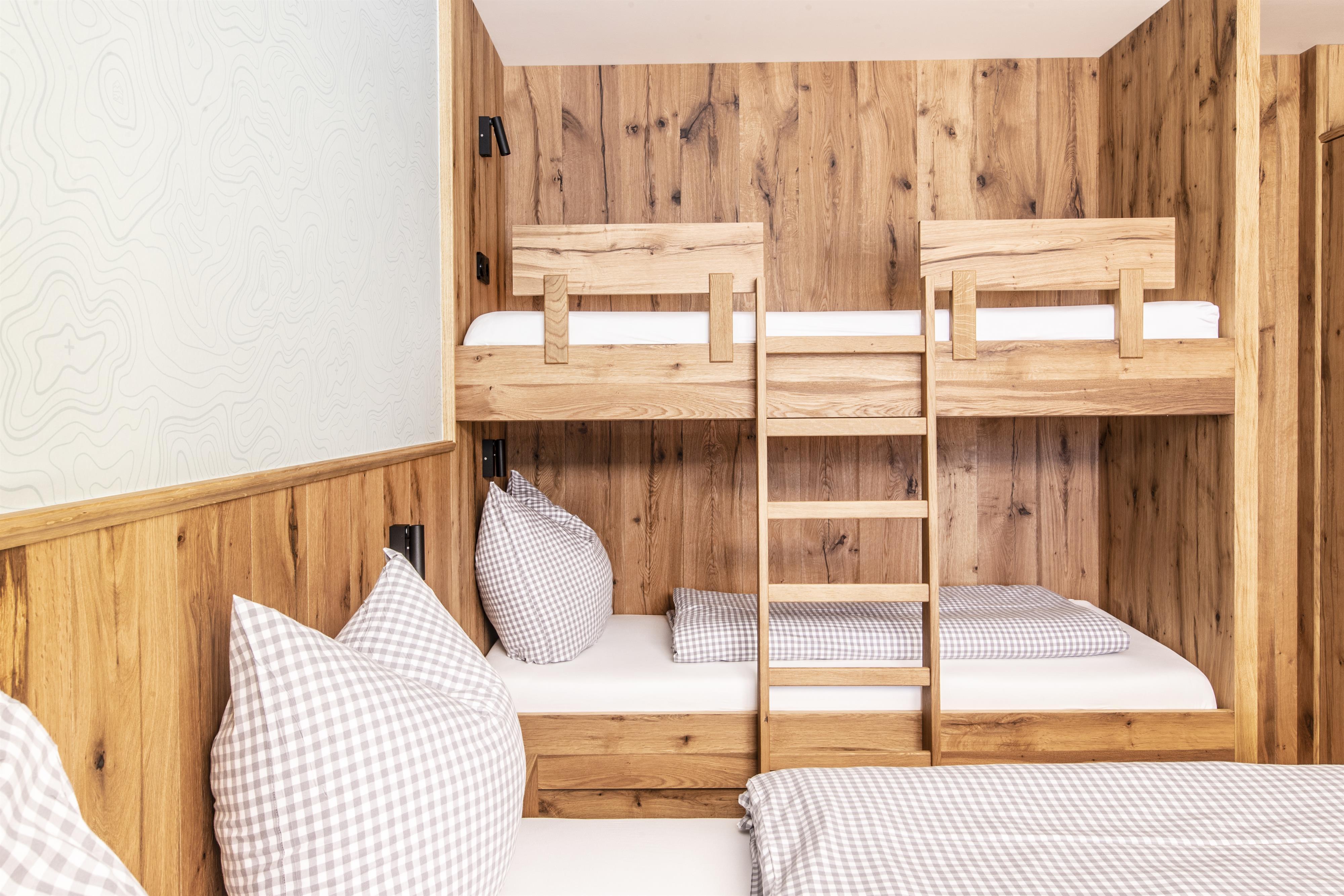 Tannberg ist ein ideales Familien-Apartment. Mit zwei Schlafzimmern, einer gemütlichen Wohnküche und einer rieseigen Liegewiese bietet das Apartment viel Platz zum Relaxen. Highlight ist ein großzügig überdachter Balkon. Auch was die Küchenausstattung angeht, ist Tannberg top befüllt: Dank des Kühlschranks, mehrerer Kochfelder und eines Geschirrspülers steht ausgiebigen Kochabenden im Urlaub nichts mehr im Wege.