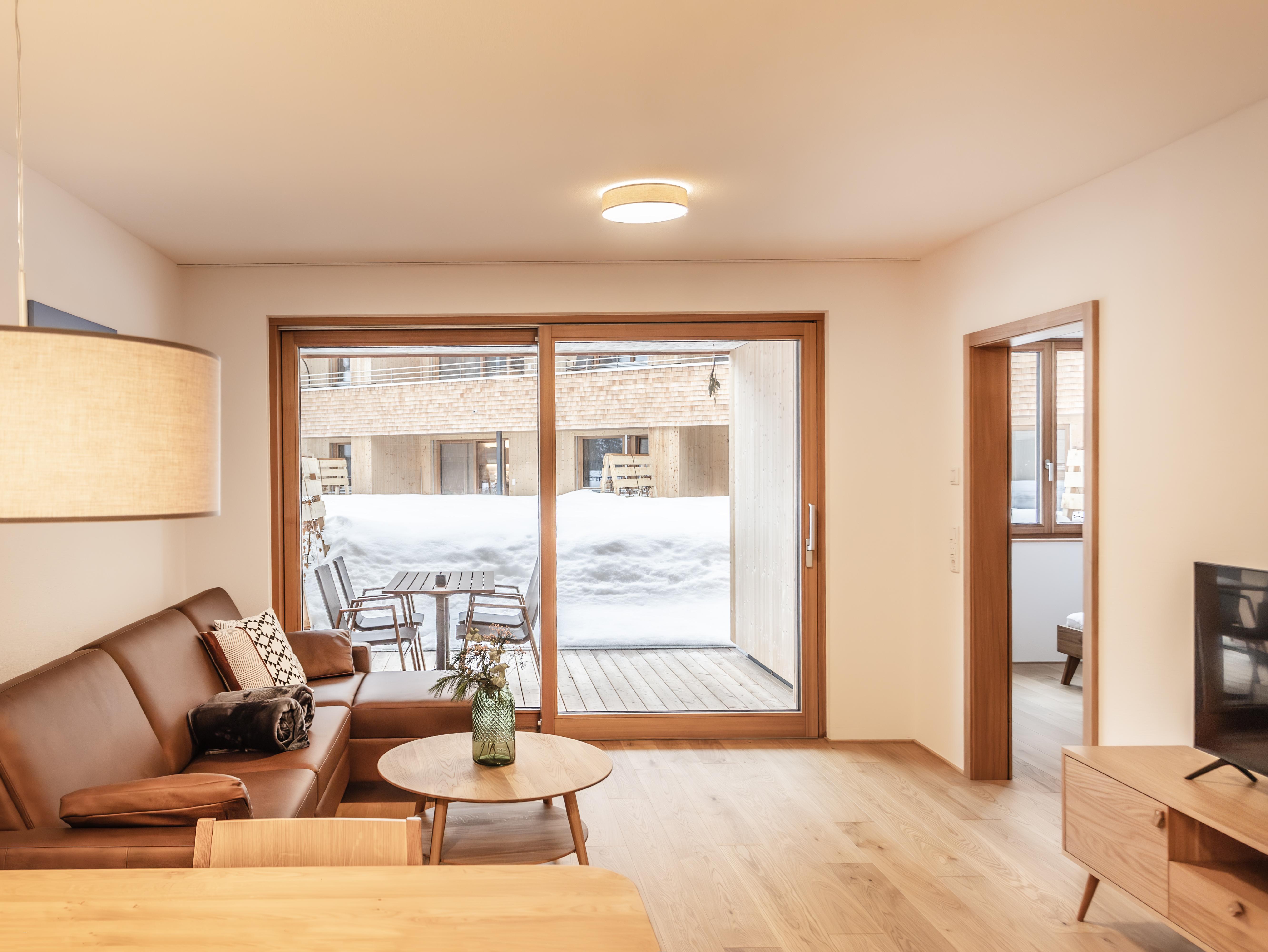 Nahe gelegen zu den Skiliften, dem Tor zum Arlberg, sind die Sonnberg Aparts der perfekte Ort um im Sommer als auch im Winter, neue Energie aus der Natur und der atemberaubenden Landschaft zu tanken.