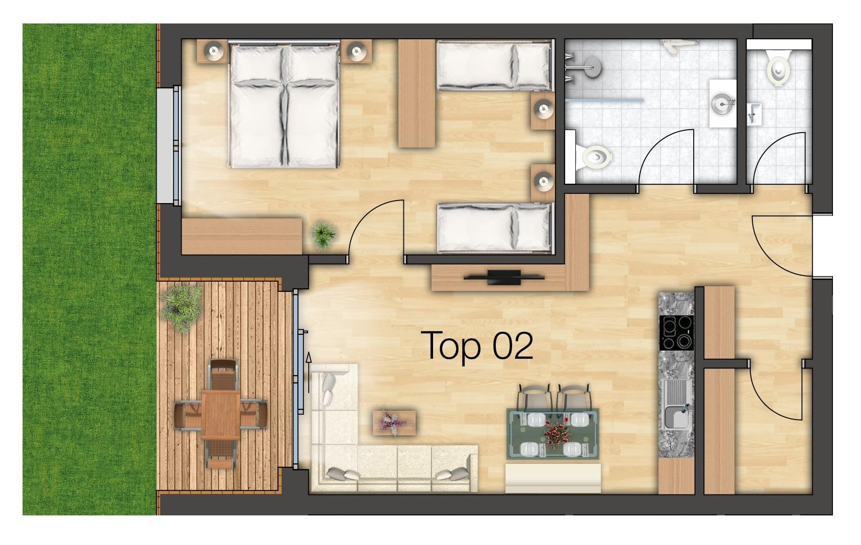 Gemütliches Appartement mit 68m2 und Terrasse.