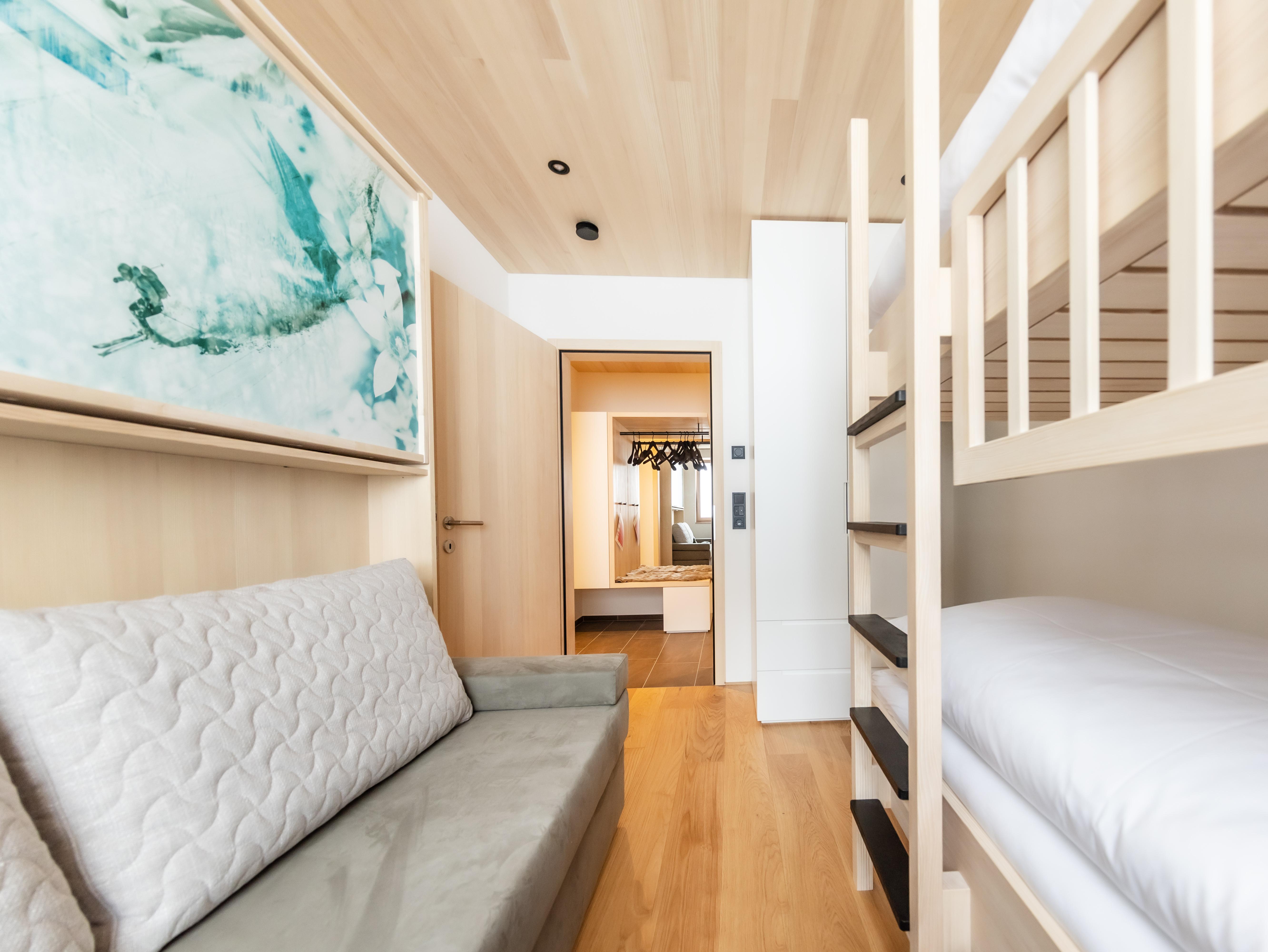 Das Appartement hat 2 Schlafzimmer. Eines mit 1 Doppelbett und ein Schlafzimmer mit 1 Stockbett und 1 Einzelbett.