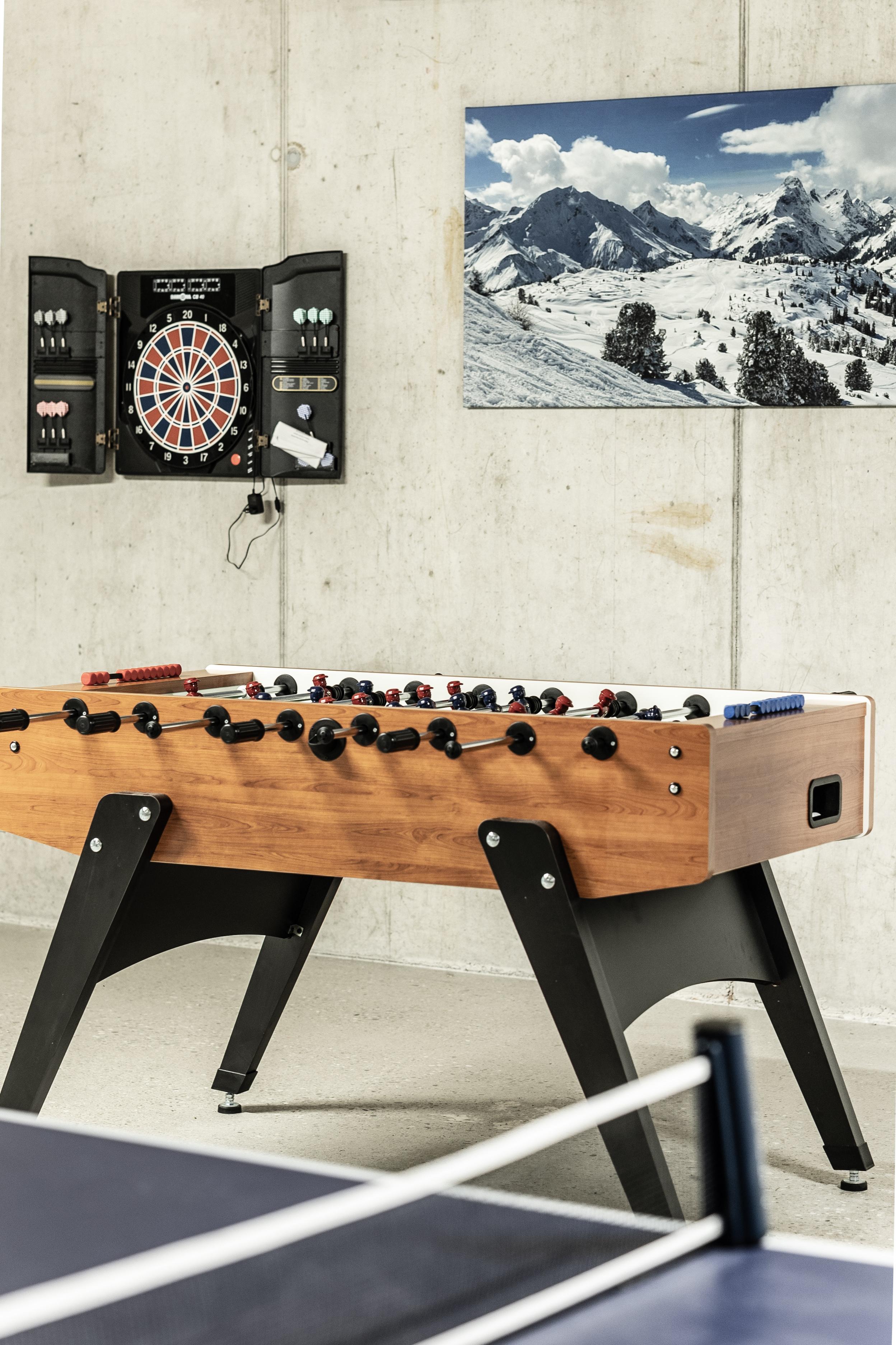 Freuen Sie sich nach dem Wandern oder Skifahren auf eine gemütliche Sauna mit Wellnessliegen. Hier können Sie so richtig entspannen. Die gerne noch etwas „Aktion“ haben steht im Aufenthaltsraum ein Kicker, Tischtennistisch und eine Dartscheibe bereit.